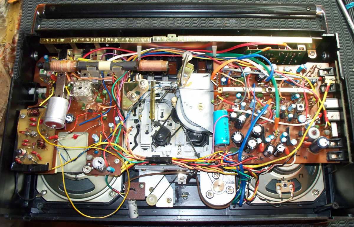 Аппарат собран, всё установлено на свои места, но вот ещё одна неисправность осталась, правый канал играл значительно тише. Подозрение было на подсохший электролит. Но нет, после консультаций со специалистом и парочки манипуляций с тестером, был поставлен диагноз, неисправен резистор правого канала, а играет этот канал через ножку тон компенсации.