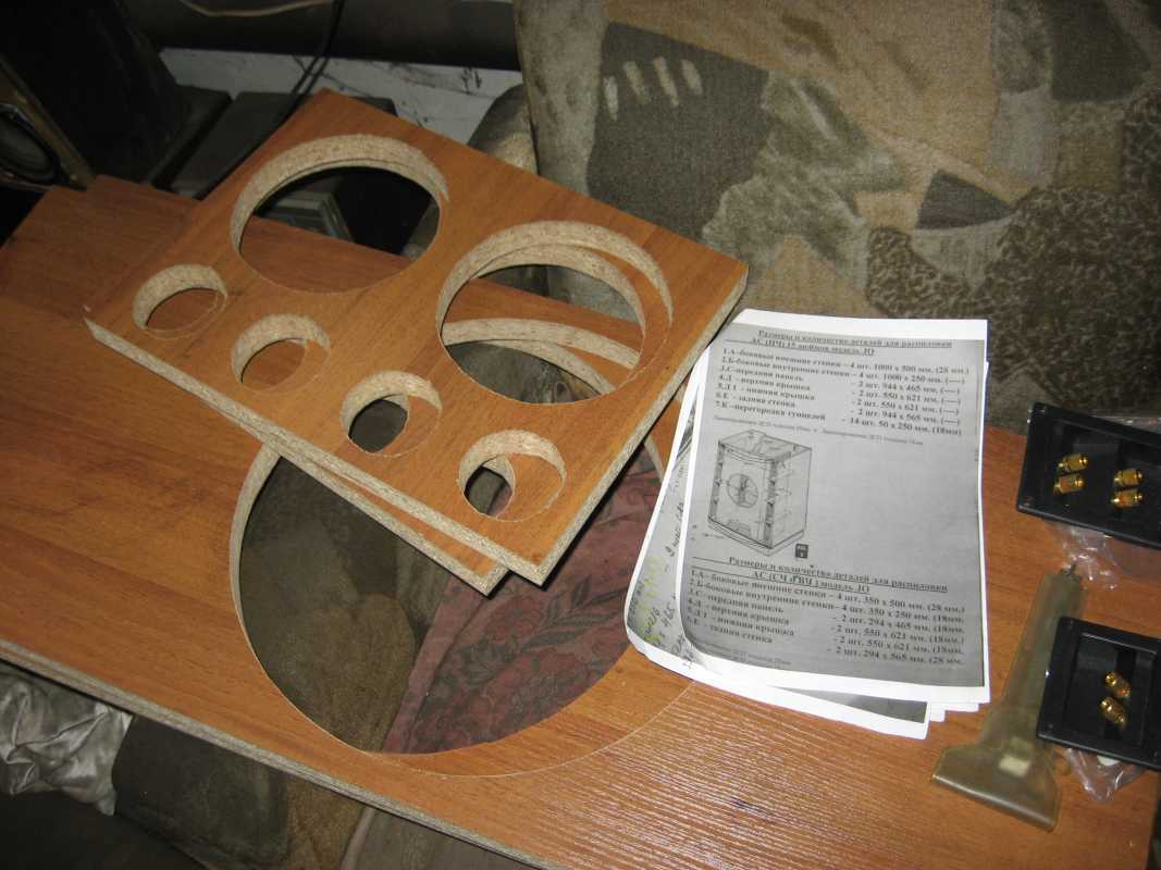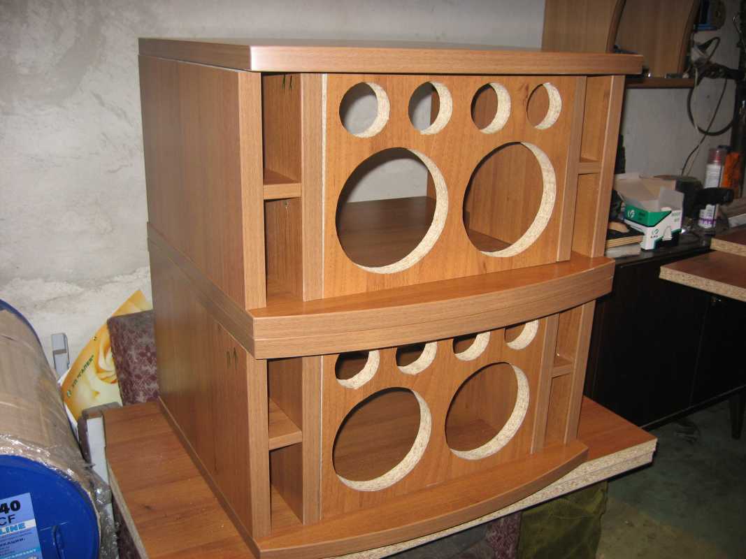 Хотелось бы сказать по материалу корпусов... Материал типа ДСП, не самое лучшее, с чем пришлось поработать. 28мм. плита при своей жесткости, тем не менее, является отличным проводником звуковой волны. Звон по ней, проходит с длительным временем затухания. Сейчас я ДСП не применяю априори.