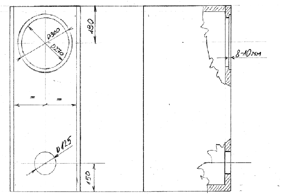 Оформление было выбрано, не мудурствуя лукаво))) самым простым. Фазоинвертор, по рекомендации автора динамиков, был самым приемлемым вариантом. Чертеж колонки, посоветовал И.Варга, он и был взят за основу . Очень хотелось выполнить колонку максимально просто, без каких либо доработок и усовершенствований
