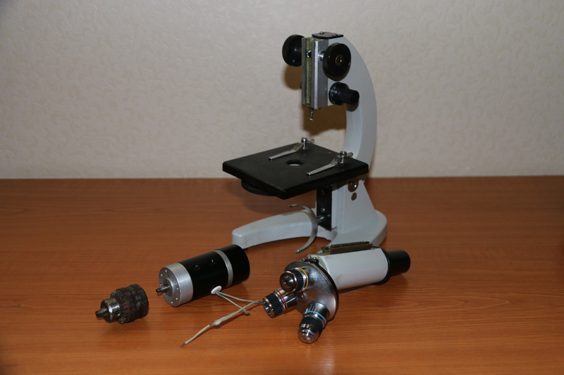 Давно мечтал об более менее приличной сверлилке. То, что продают в Жданах....не принимало сознание, а в фирменных девайсах, не устраивал мин. размер патрона.Покопавшись в закромах коллективного разума, выбор пал на старый микроскоп...Точнее на привод гайка-рейка, для вертикальной подачи.