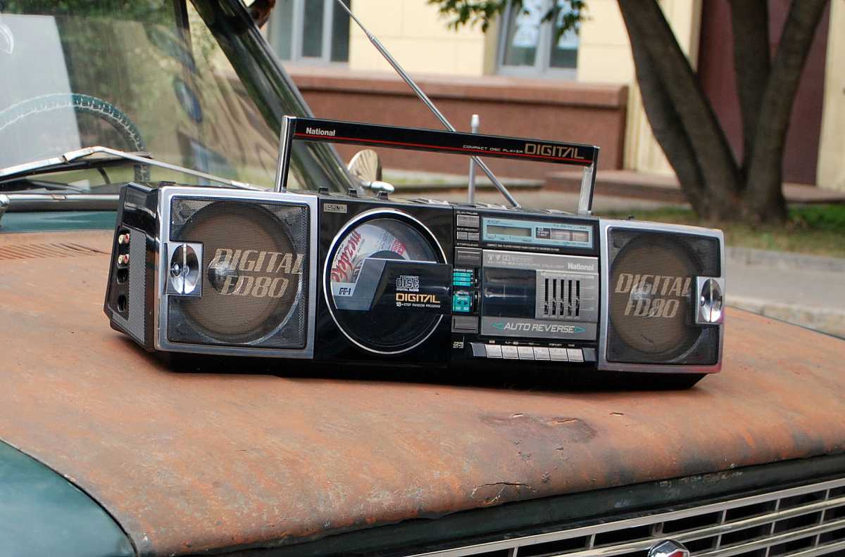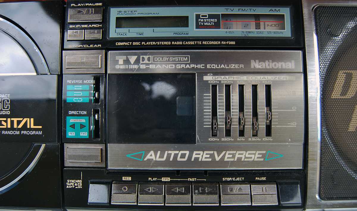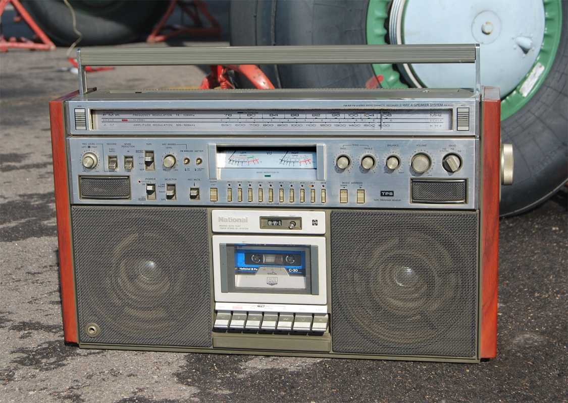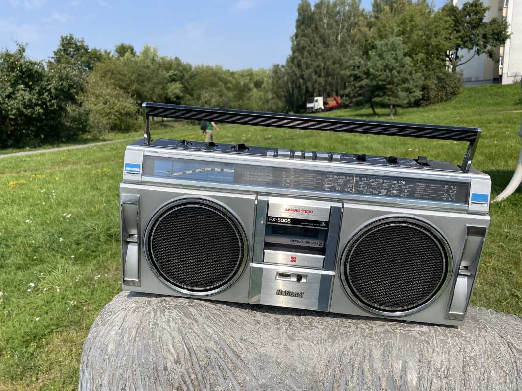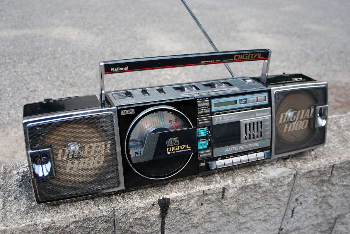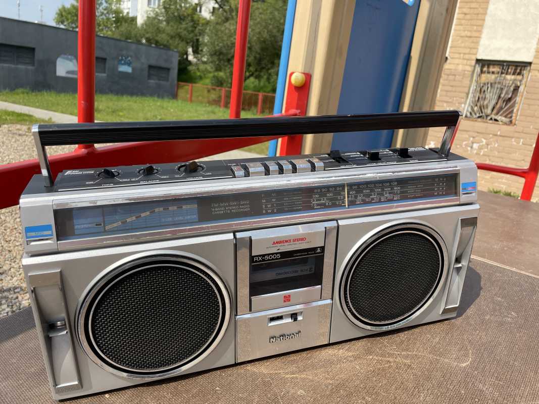 На дворе стоял далекий 1987 год. Японский концерт Matsushita основательно подготовился к переходу своей продукции портативного радио на новый музыкальный формат - СD. Открываются новые горизонты в безграничном качестве звучания, которое обеспечит лазерное чудо. Будущее здесь и сейчас. Вставил диск и фантастика уже у вас в доме. Под брендами Panasonic и National выпущен первенец компании RX-FD80, позволивший прикоснуться покупателю к новому, наберающему популярность, цифровому формату. Возьмем в руки фирменный каталог тех лет. FD80 здесь смотрит на нас прямо с обложки. Открываем следующую страничку. Мегахит без лет, двухкассетный со спектроанализатором CW200 и тот смещен в каталоге на позицию ниже этого суперсовременного лазерного монстра. То есть RX-FD80 - тот самый топ, на который возложены огромные надежды и строится маркетинг мирового японского гиганта. Эдакая первая ласточка грядущей новой эры. Купил эту штуковину не имея ни малейшего представления что это за аппарат. Просто захотелось заполучить магнитолку с сидюком. Приобрел в Японии, имея приятеля на Сахалине. Аппаратик контрабандой доставили моряки вместе парочкой из верхних постов. Попросту прихватили с собой лишний багаж в японском порту. Приехал магнитофоне в Беларусь. Честно говоря, брал аппарат понравившимся по картинке и думал что получу небольшой батончик. Куда там. Приезжает тяжелая, почти шестикилограммовая длиннющая магнитола с лопухами 14 см динамиков из белой рисовой бумаги. Подключить и послушать шансов никаких. В этой модели не предусмотрено питание через блок питания или через автомобильный шнур. Только сетевой на 100вольт. Ну раз такое дело, попробовал проверить магнитолу через ... блок питания, припаяв в пружинам батарейного отсека. Магнитола тут же включалась и тут же звук пропал. Мощности внешнего трансформатора не хватило. Аппарат жадно из него всё высосал. Ещё бы. Мощность то якобы 50W PMPO. Естественно, первое что необходимо сделать с этим пациентом - заменить трансформатор на 220 вольт. Япончик к тому же выдавал 13,5V. Как раз аналог у меня уже был. Магнитола включилась и довольно хорошо запела. Без каких либо особых приукрас она чудным образом отрабатывает тот звуковой сигнал, который поступает. А именно, магнитофон тех тет, где производитель не сэкономили практически ни на чем, кроме, видимо вышедших из моды светодиодных или стрелочных индикаторов. Но и без них тут фарша в лучших котлетах столько не найти. Первое, собственно, это сам CD с вертикальной загрузкой. Смотрится богато. Это потом диск спрячется в магнитолах куда нибудь наверх корпуса. А тут он на виду. Особое внимание уделюименно этой опции. У магнитолы богатая функция использования этого самого CD. ЖК дисплей. Возможность повтора, рэндом и поиск на 18 треков, память. Понятное дело что у магнитолы второй носитель - компакт кассета. Так вот: здесь предусмотрен синхростарт CD для перезаписи на пленку. Удобно? Конечно. Теперь о самой кассетной части. Смотрим на подкассетник. Прямо на передней его панели 5 полосный эквалайзер. Ну куда же без автореверса. Слева от подкассетника рычажок переключения положения головки, которая при этом проворачивается пластиковой шестеренкой. Такая же лентопротяжка в свое время устанавливалась в нашу советскую Вегу 250-2 . Два вала. Два маленьких ролика. Большая кондовая лентопротяжка. Слава богу о