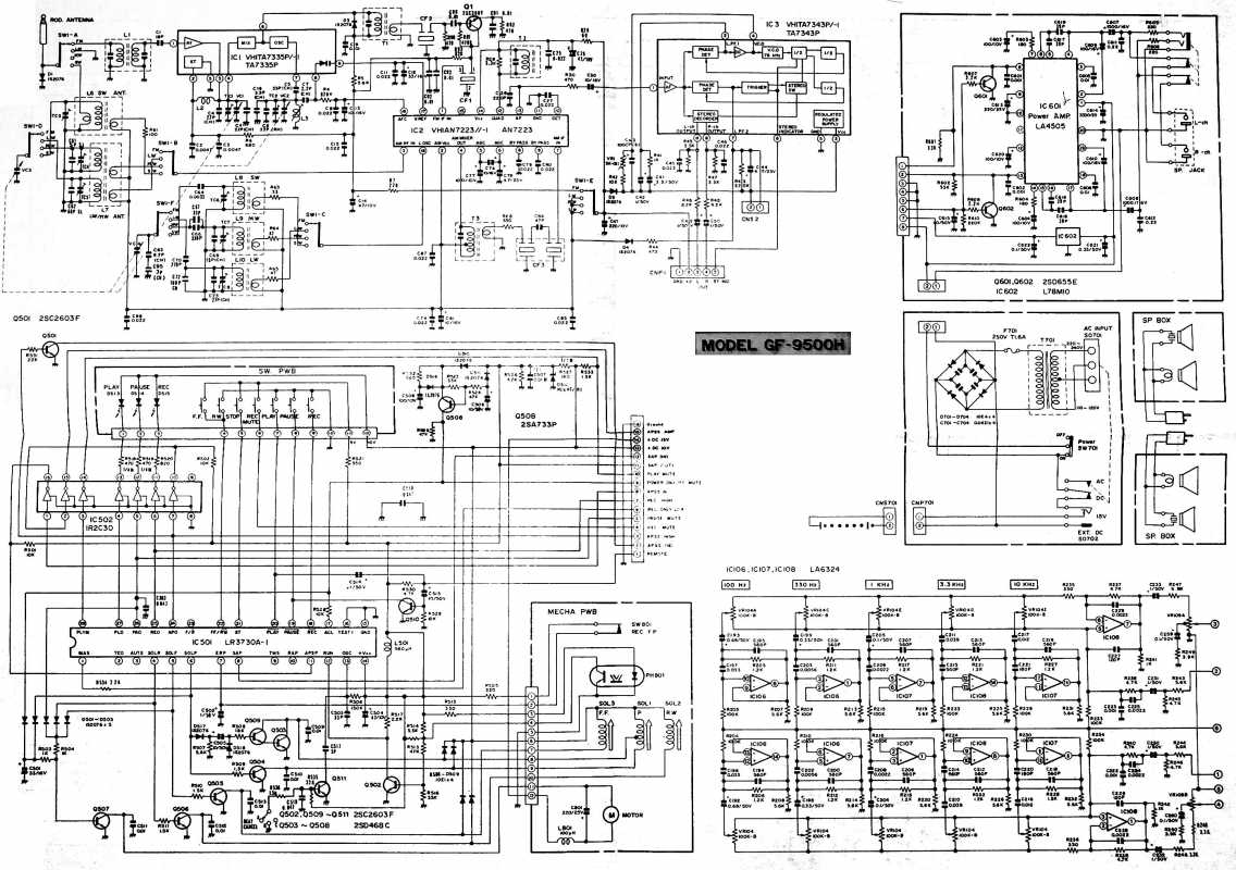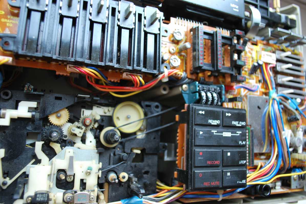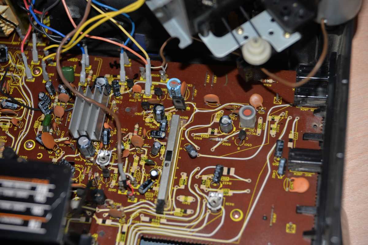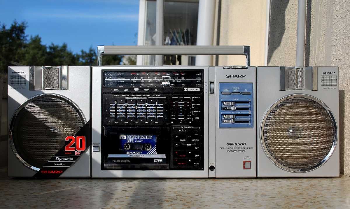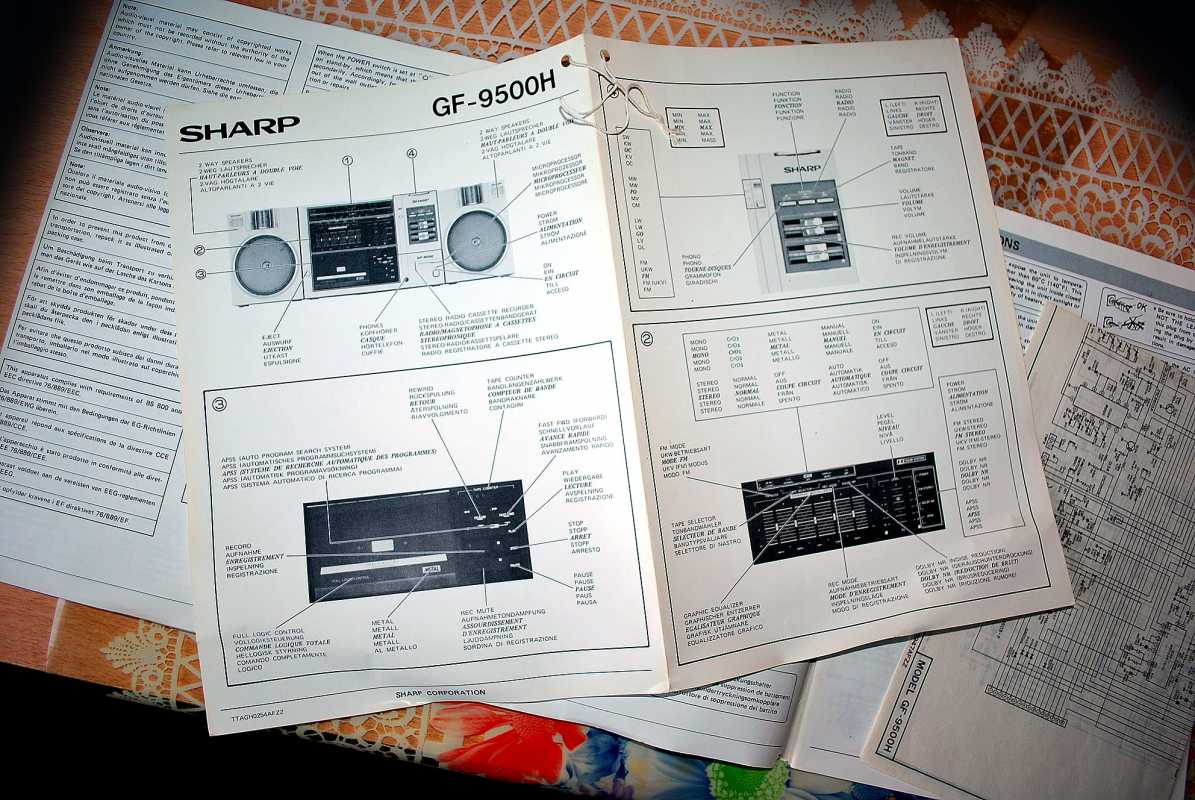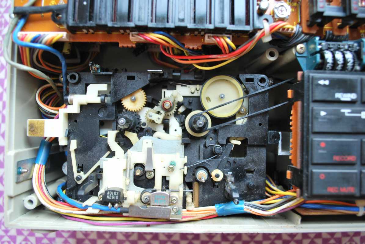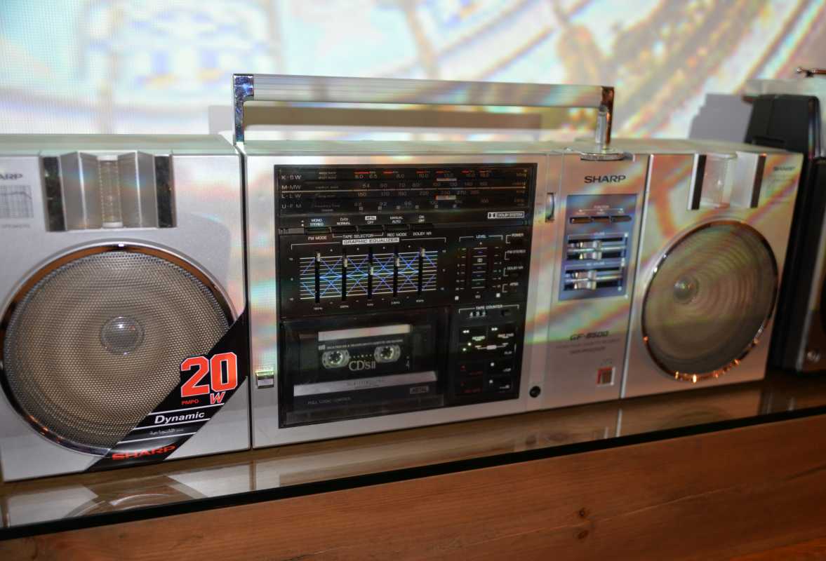 О существовании этой магнитолы у моего соседа я знал лет двадцать пять. И кроме как у него больше ни у кого не видел. Андрюха - известный в Беларуси барабанщик, еще с тех времен когда страна имела на мой взгляд более красивое и уютное название Белоруссия. (Беларусь для меня - эпоха АГЛ) Фил, или официально, Андрей Филатов барабанил в самой первой белорусской рок-группе "Сузорье", а позже, уже в "Крама". В 80-е он приобрел в Германии свой магнитофон, на котором даже были записаны некоторые песни "Сузорья". В лихие 90-е у соседа был период, когда он открыл на бульваре Толбухина небольшую студию звукозаписи рядом с "Каменным цветком" и магнитола SHARP помогала ему в записи с винила, вертушки "Электроника 017". Там, видать магнитофону и досталось потрудиться, несмотря на бережные руки хозяина. Лет десять назад меня подкосило странное увлечение коллекционирования ставших уже историей, японских магнитол, а в год короновируса и политических катаклизмов зашел к Андрею в гости. Накануне он перенес сложную операцию шунтирования на сердце. Я зашел справиться о здоровье. А получился спонтанный видеосюжет. Прощаясь, Филатов вдруг предложил найти покупателя на его магнитолу, которая к тому времени долго и бережно хранилась на антресолях в родной упаковке, видимо занимая место. Честно, я даже не помышлял о приобретении этого аппарата, бо не коллекционирую магнитолы где колонки отстегиваются от корпуса. Но в данном случае - исторический коробочный экземпляр с документами и автографом владельца. Я не торгуясь его приобрел за красивые деньги, которые сегодня Андрюхе нужны. После такой операции теперь не побарабанишь. И вот у меня дома теперь еще одним ящиком больше. Огромный впечатляющий аппарат. Крепление колонок интересной конструкции нужно было немного отремонтировать, разобрав корпус самого системного блока магнитолы. Теперь оно абсолютно надежно зафиксировано. Колонки с виду похожи на GF700. Те же самые катушки провода, которые немного выезжают и фиксируются при его сматывании. Те же динамики, но в середине катушек есть отверстия подобия небольшого фазоинвертора, чего нет в семисотом. Сама магнитола выпуска 1982 года и предполагая что же первично яйца или курица, уклоняюсь к народному мнению что GF9500 - модель, которая появилась раньше своего двухкассетного и брата GF700. ЛПМ у андрюхиного 9500 на данный момент молчалив. С моих первых попыток его оживить и сейчас в том же состоянии. Кнопки все включаются. Соленойды срабатывают, но вот двигатель молчит. И эта неисправность, судя по стонам в интернете, довольно популярна у этого аппарата. Слишком уж намудрили японцы с электронным управлением. Лентопротяжка у GF9500 отличается от softtouch GF700 не только кнопками у второго и панелькой управления у первого но и двумя соленойдами у магнитолы рок-звезды. Внутрення конструкция магнитолы уже не создаёт впечатления брутальности, как например у GF9696/9595/9797. Тут нет изобилия металла. Здесь много пластика. Раскрыв корпус, мы видим как вываливается один блок из другого. Да собирать на японском заводе побочно и фиксировать всё винтами, закрутив заднюю крышку видимо было технологично и удобно. Но как то уж революционно изменись технологии сборки за один год в компании SHARP. Жгуты проводов стали покороче, что в этом магнитофоне привело к обрыву нескольких при вскрывании, что удалось легк