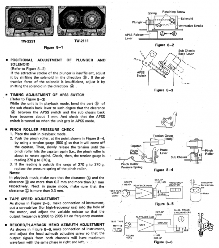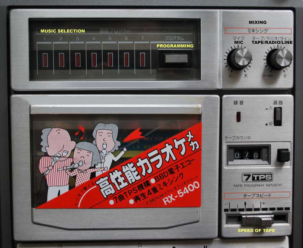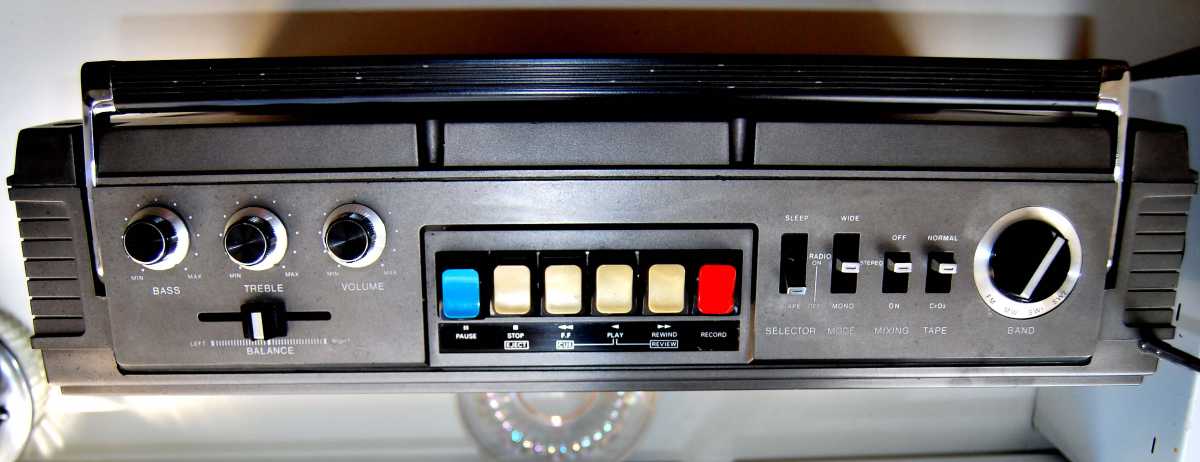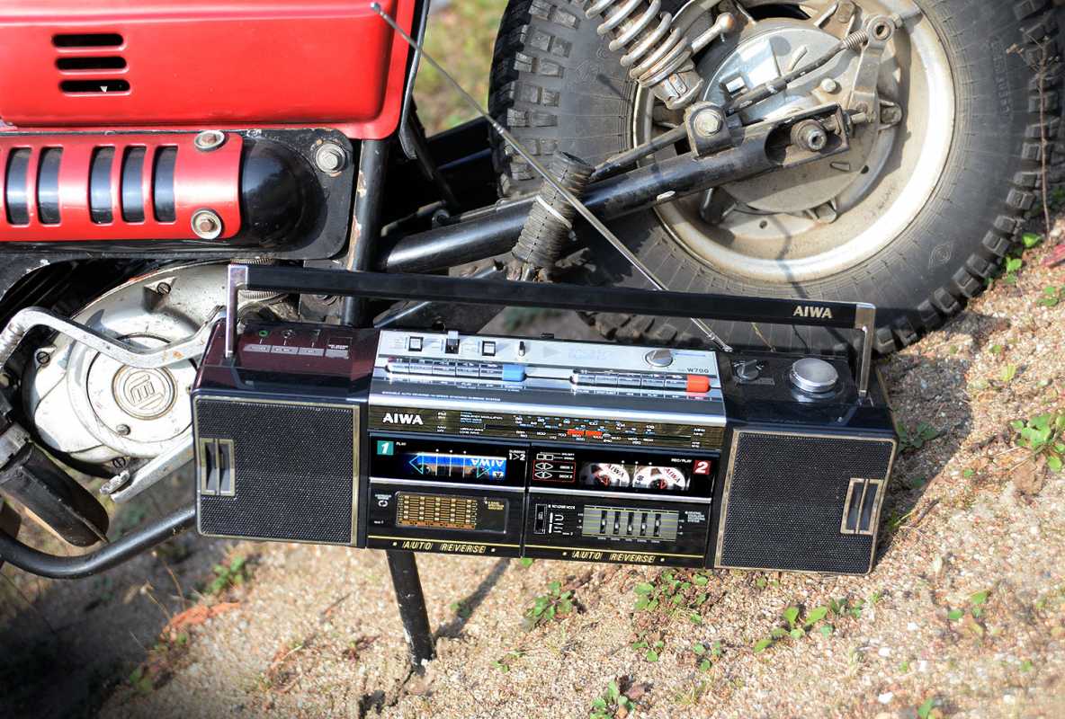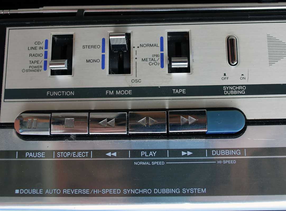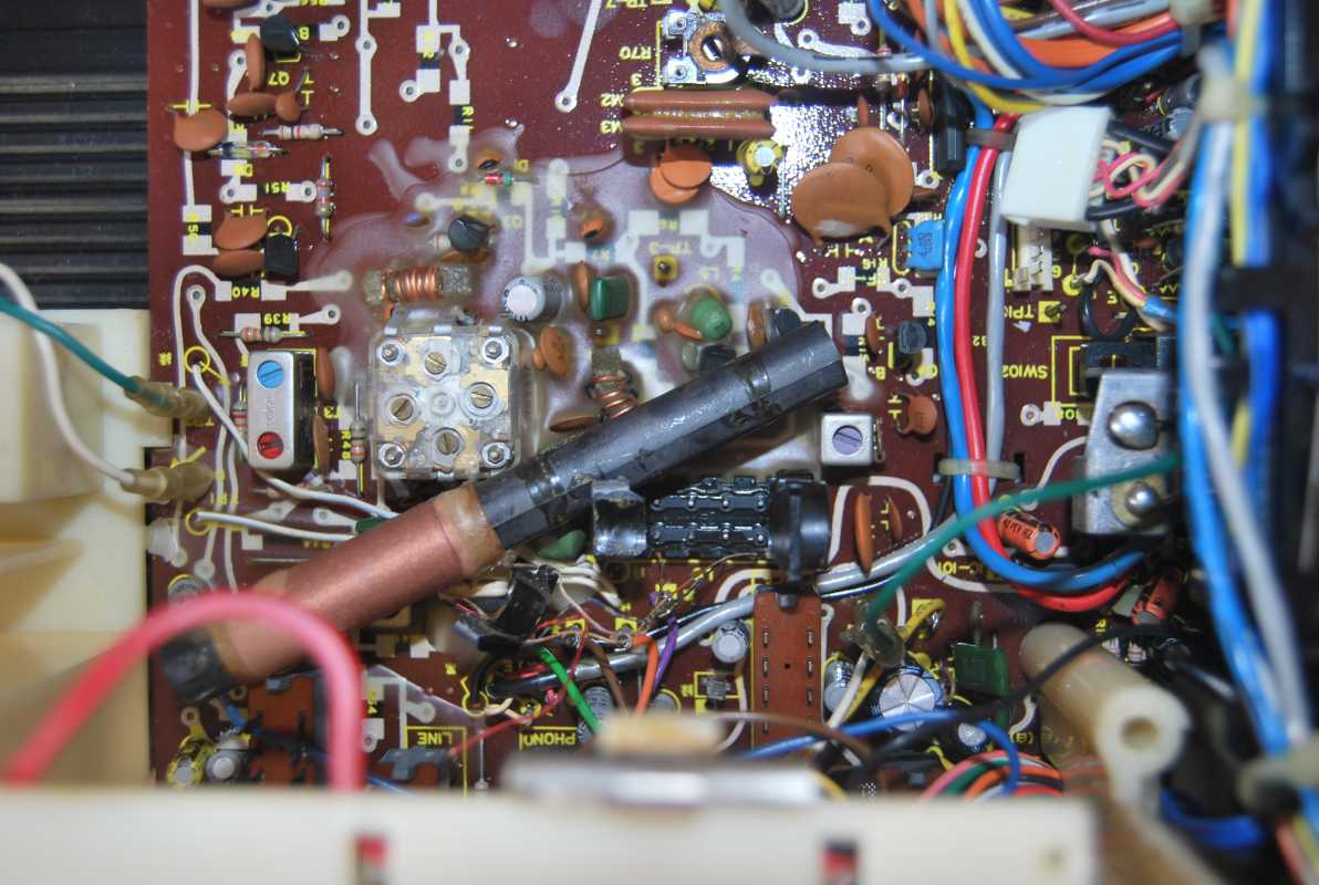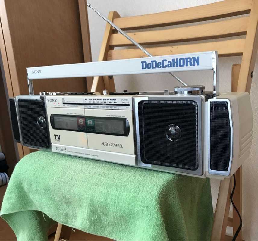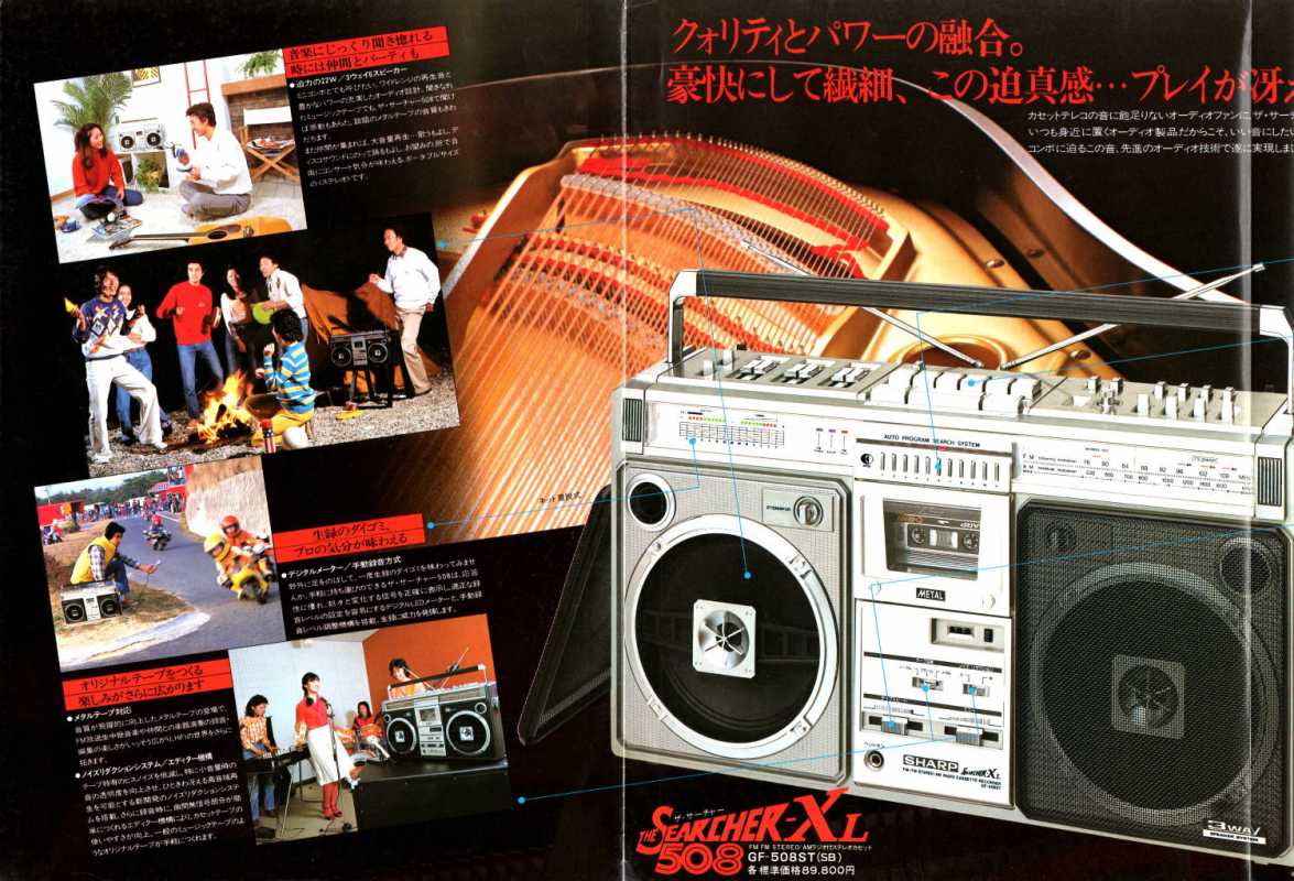 Следующее приобретение было весьма спонтанным. Была возможность купить и привезти магнитолу с Японии и я этим шансом воспользовался. Залез на японский аукцион, а тут на последнем часу скучает необычная для наших мест магнитола. Нажатие кнопки раньше, чем кто-то другой сообразил и старенький магнитофон отправился из префектуры Сайтама, что рядом с Токио, прямиком на пароход. Через неделю был уже на Сахалине и всей кучей прочих японских нештяков - японским виски, винилом и прочим скарбом отбыл на большую землю и чудом успел кораблем в Хабаровск, когда начался сентябрьский тайфун. Ну а там и Беларусь недалеко. Приезжает значит он, ко мне вместе с тремя ящиками всякой японской всячины. Открываю, и обомлел. Магнитолу японец засунул в обычный картонный ящик абсолютно ничем не обернув, кроме одного слоя полиэтилена. И при этом все цело и невредимо. Достаю. Чумазый причумазый. На хроме следы окислов. Тер-тер всякими мульсиями. Хоть бы хны. Смотрю, на подоконнике стерка школьная лежит. Прошелся несколько раз. Окислы смыло. Не зря в армии электроконтакты на танках так чистили. Милое дело. В батарейном отсеке родной шнур. 100v! Подключил 12вольтовым блоком питания с минусом на жиле, этой же фирмы, купленным летом в Одессе. Прикольно. Кассета работает. Радио ловится. Красота. В подкассетнке собачья или кошачья шерсть войлоком. Но зато все поет. Шуршат все крутилки, зато система поиска песен работает. Интересный тяжелый аппаратик. Слава богу повезло с мордой алюминия. Коррозии, которая бывает практически и не заметно. Голова на аппарате MX. Кассеты тестовые C-30 у меня на этот аппарат аж в двойном количестве. Полез вовнутрь, все как и положено в огромной магнитоле конца 70-х. Большая массивная лентопротяжка с чудными закидонами, видимо реализации программы поиска. Когда она включена в режиме поиска на кассете, некоторые другие функции не включатся, пока не отключить саму программу поиска. Не просто, кондово, много металла и некоторых новых для меня элементов. Кругом жгуты, но и планки разъемов тоже присутствуют. Японский транс в закрытом корпусе и от него идут два провода. Большие 16 сантиметровые динамики. 5см пищалки. Шикарный аппарат, который держать в руках и смотреть живьем куда интереснее чем на картинках из интернета. Деревянный кабинет на самом деле пластик. Смотрится офигенно. И слава богу это не дерево. Возни бы с лаками было бы куда больше с сорокалетней магнитолой. Голова MX. Cтеклоферрит. Как ни крути, 1978 год а она как новая. В отличии от SONY CFS-85 с таким же "деревянным" кабинетом, тут стирающая голова настоящая а не магнитик. С переделкой магнитолы на трансформатор 220v у меня состоялась забавная и довольно затянувшаяся на пару лет история. Установил, стоит гул. Что я только не делал. Может провода рядом с трансом? Крутил-вертел, не помогает. Экраны? Тоже нет. Плюнул, отпаял новый трансформатор, растопил свечек и погрузил в расплавленный стеарин. В течении пары минут из "утопленника" потянулись редкие пузырьки воздуха, покидающие зазоры пластин. Припаял обратно транс. Результат - потише но все равно гудит. Корпус магнитолы впадает в резонанс с трансформатором. Взял резиновый шланг от топливного мотонасоса диаметром в 5мм и нарезал колец высотой по миллиметра 3. Установил площадку крепления трансформатора на "подушки" и затянул прижимные винты. Заметный г