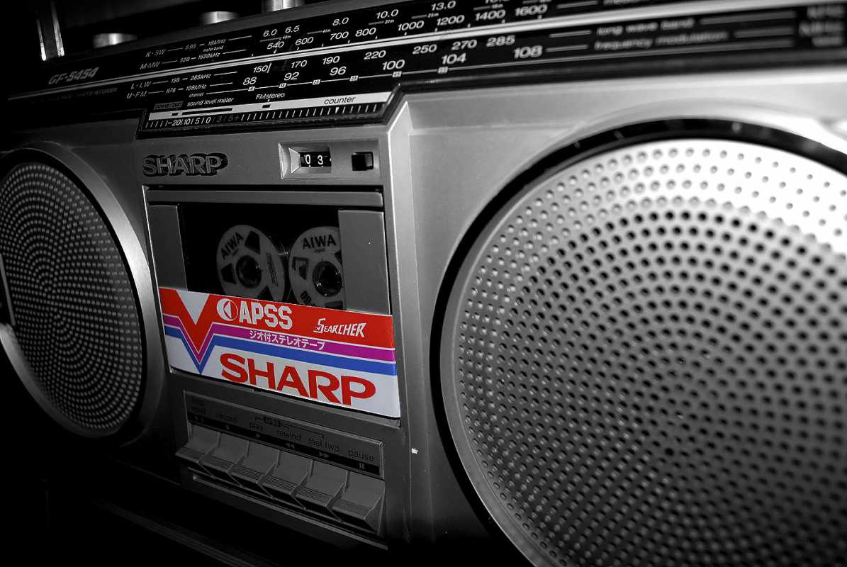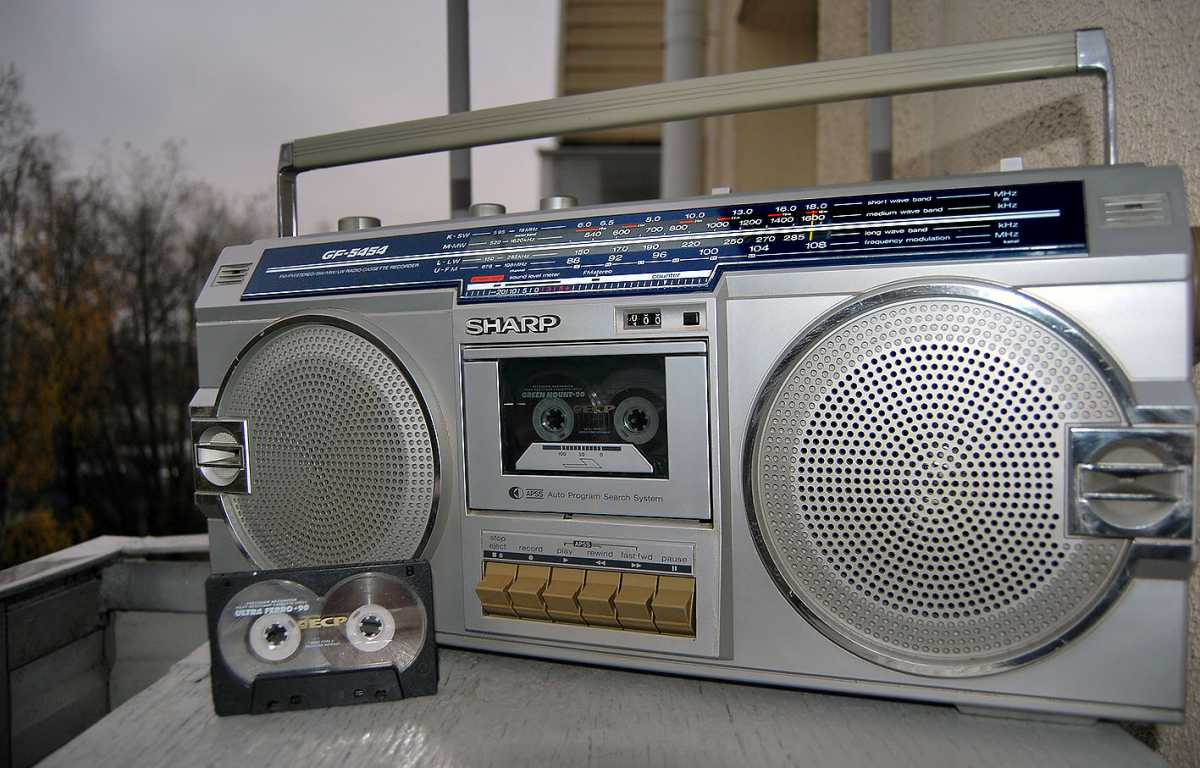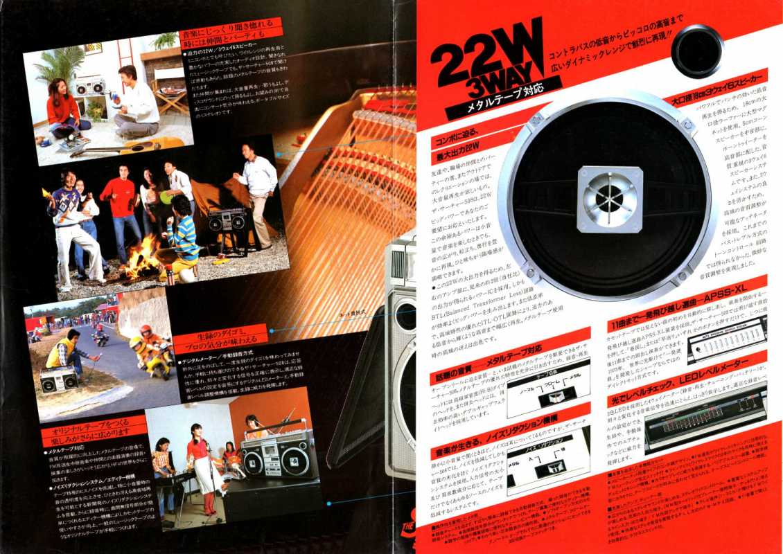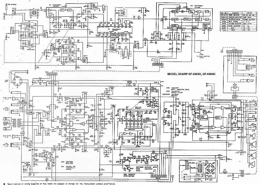 SHARP GF-5454 сначала я почти год ходил глотал слюни на улицу Карла Маркса, где в Минске находилась комиссионка японских магнитофонов. Потом мы с отцом взяли некислую сумму рублей СССР и отправились делать покупку. Приходим. Уже готовы брать именно такой магнитофон, как к нам подходит какой-то спекулянт и предлагает за ту же сумму что и в комиссионке, новенькую, в коробке, но немного другую модель. Короче, я не стал обладателем GF-5454. Уж очень он мне нравился. Зато по случаю таки я заполучил этот аппаратик и он стоит в моем шкафу. Теперь собственно о самом SHARP GF-5454. Можно смело назвать этот удачный аппарат одним из самых массовых. С огромным воодушевлением везли его со всего мира в СССР чернокожие обитатели советских общаг с целью перепродажи. Стоил недорого. Зато какой подъем! 1200 советских рублей. 5 месячных зарплат лейтенанта ВС. Если рассматривал его конструкцию, то она основана на популярных 12см динамиках, которые мы встретим и в более младших GF-4646 и в более раннем GF-6060/6161, более позднем GF-7500/7600 и в двухкассетных GF-450/500. Но на мой взгляд именно этот магнитофон являл золотую середину. Достаточно широкий аппарат более 50см. Наличие красивого свтодиодного индикатора, только входившего тогда в моду. Больше всего модель портил АРУЗ - автоматическая регулировка уровня записи. Писать на этот магнитофон с внешнего источника было истязанием. Лучше было это сделать на чем-то другом и на шаре только воспроизводить. Зато в наше время это уже не важно. Шикарный, цепкий радиоприемник великолепно ловил вражьи голоса. А как 5454 сегодня отрабатывает прием FM! Жаль в те времена послушать этот стереодиапазон было не возможно в СССР. Магнитола на мой взгляд является ярким и удачным образцом классического яркого дизайна своего времени. Легка в ремонте и разборе. Пьезопищалки... они присущи большинству магнитол той поры. В аппарат так и просилась раздельная регулировка диапазонов. Конструкционно она была заложена, но ее реализовать не спешили. Выпускался аппаратик в двух цветах - в серебре и кофе с молоком. Шкала могла быть голубой или черной. А вот аналогичная модель для рынка Японии отличалась блестящими хромированными кнопками. ТЕХНИЧЕСКИЕ ХАРАКТЕРИСТИКИ Принимаемые диапазоны радио FM 87.6 MHz- 108 MHz SW1 2.3MHz - 7.3MHz SW2 7.3 MHz - 22.0 MHz AM 525 kHz - 1,605 kHz Частотные характеристики 50Hz ~ 10,000Hz Соотношение финал/шум 50dB Мощность от сети PMPO 15W(7.5W+7.5W) MPO 12W (6W + 6W) Мощность от батареек 5.8W (2.9W + 2.9W) Размеры Ширина. 500мм Глубина 120мм Высота 226мм Вес: 3.9 кг