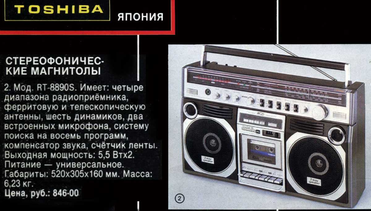 Вложение 1422.jpg не найденоПод самый отъезд позвонил товарищ и предложил вот такую Tokyo Shibaura. На обмен. Ну я и махнулся. Правда история этого приобретения надолго затянулась. Да и расставаться с аппаратом ему особо не спешилось. Как то в далеком 1981году, когда мы с приятелем Вовкой Киселевым усиленно сачковали уроки в десятом классе и ходили вместо контрольных учиться в аэроклубе прыжкам с парашютом. В те далекие, уютные, замечательные времена, когда ничего не было но всё хотелось, батя - военный советник, ему привез вместе с сумкой апельсинов из Сирии магнитолу Toshiba RT-8890. Cлушали мы диво дивное в расширенном звучании на арабских кассетах - неслыханную но по ободранным партам известную группу KISS. Альбом назывался Dynasty. И так хорошо мне это дело зашло, что начав спустя три десятка лет собирать магнитолы, эту разыскать поставил во главу угла. Контакты друга пропали со временем, а магнитола мне никак не попадалась. Никто он своей избавляться не хотел, а в редких случаях просил кучу денег, которую не просто отжалеть нужно, а еще и притащить бог весть откуда. А тут вот набрел на нее мой приятель Олег Мамаев, который зная мою слабость к этой модели, ждал что бы у меня хорошего выменять таки. Думал долго, но наконец созрел. Магнитола с некоторыми косяками, которые мне придется исправлять следующим летом. А именно, кто-то на нее то ли паяльник, то ли что-то подобное приложил. Еще и антенна выломана вместе с куском пластмассы. А меня медом не корми, дай такую мелочевку исправить эпоксидкой с перемешанным черным тонером. Будет как новая. Вот такой магнитофончик. В далеком 1980 выпускался для Центрального Востока и арабских стран Северной Африки. Поскольку была топовой моделью для данного региона, йеменские студенты сюда такие не везли. Поэтому RT-8890 абсолютная экзотика на развалинах былого СССР. Не смотря на недостатки косметики, на этой фотке их и не видать. А приобретение - это есть удовольствие. Тем более искал лет эдак семь. Уже всех знакомых поднял Вовку разыскать, перепотрошил социальные сети на двух языках. Приятель пропал. Ну дай бог ему здоровья, хотел было выцыганить ту самую магнитолу, но теперь появилась вот эта. За все время собирательства засветилась раз пять. У одного из наших даже в коробке с инструкцией есть. В свое время упустил у нас на онланере, бо опять уезжал. Инструкцию сколько ни просил скопировать, а было это несколько раз, что об стенку горох. Видать то что легко одним, свинцово непосильно другим. Магнитола Мамаева вполне себе работоспособна, но мне предстоят приятные эксперименты то ли найти донора задней части корпуса, то ли поупражняться таки еще и с утюгом. Сравнивали с Олегом вместе эту магнитолу и мою RT-9990. Японка при таких же габаритах имеет таки 18см динамики, но двухполосная. А 8890 - трехполосник. Но по нашим четырем ушам 9990 таки побасовитее, до позвонче будет. Все таки 9 серия - это топ у тошиб - моноблоков, но уж очень хотелось заполучить такую как была у приятеля из детства. Где-то в этой магнитоле японцы постарались, например нашпиговав третьими динамиками, но где-то и сэкономили, сделав проушины ручки для переноски из пластика. Бросается в глаза, когда берешь в руки старшего брата RT-9990. Да и хрома в последней поболее. По мне один из самых красивых аппаратов. Или как я их оцениваю, теплых. С душой! ТЕХНИЧЕСКИЕ ХАРАКТЕРИСТИКИ: Рабочие д