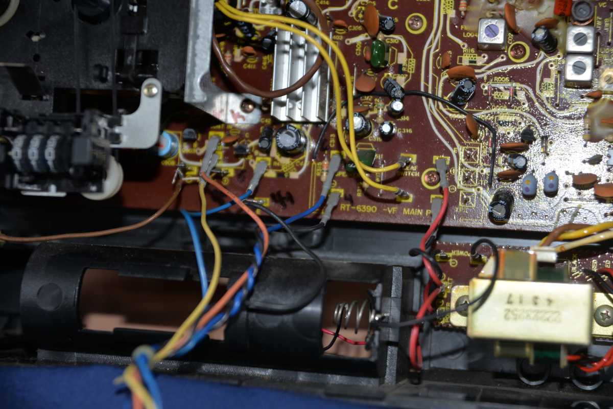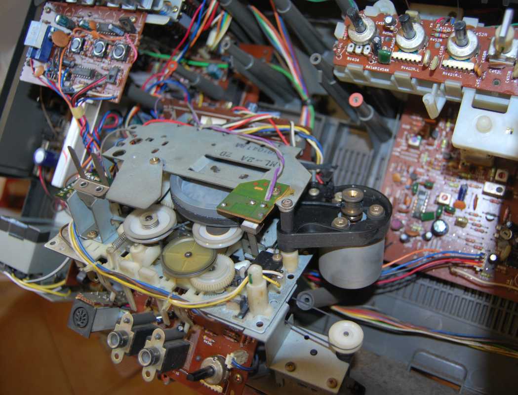 (версия для рынка Японии) Ещё один черт из табакерки, приехавший с Дальнего Востока. Причин его приобретения было несколько. Первая - у меня уже один такой есть. Но немного некомплектный. Вторая причина - приятель с того самого Дальнего Востока, сказал что японская версия играет лучше чем трехполосная версия для Европы. Ну как тут не приобрести, имея приятеля на Сахалине, которому ещё не надоели мои причуды. Охотились вместе несколько месяцев. Штуковина, мягко скажем, немного культовая и все время за ней стоит очередь. Сегодня я чудесным образом провел замечательный вечер отмывая от поплывших пассиков лентопротяжку где их один и не два, а целых 4. Но это будет отдельный репортаж, поскольку пришлось изобретать по новой схему хитросплетений и игрой "в резиночки". На магнитоле установлен трансформатор, который выложил выше. И он как-то неплохо справляется с возложенными обязанностями. Может быть я бы и оставил эту магнитолу работать с внешним блоком питания, но полярность внешнего гнезда оказалась обратная. Все равно светили лишние телодвижения. Делать - так делать. И так, очередная фотосессия магнитолы исключительно для рынка Японии, которая в отличии от европейки выпускалась в двухполосном исполнении. Косяки были от длительного бездействования. Переключатель режимов функцианировал станным образом - при включенной кассете работало радио. Левый канал что ни крути, еле попёскивал. Ну и самое главное - возвращение к жизни лентопротяжки. Одно дела пару часов спиртом отмывать старые пассики. Не менее веселое занятие - придумать как они должны быть расположены. Можно было бы коечной раскрутить мою европейку 8600, но мы не ищем легких путей. Не хотелось тратить лишнее время. Ди в в конце концов само получилось. И так. Разбираем. 8 оцинкованных болтиков резьбой 3мм и длинной 5. Открутились без проблем. Иногда десяток отверток переберешь. А они не цепляют. При обратной сборке болты я теперь обмакивю в силиконовую мазку. Столнулся с несколькими неожиданными сюрпризами. Вроде похожий магнитофон не просто одной марки, но и одной модели. Но японцы наворотили, создав не только абсолютно разные маски лицевой панели для японской и европейской версии. Например - разный подкассетник. У азиатки он шире на 5мм и другая форма под другим углом венца лифта. Он и в глубину помирена 3мм. От одной к другой магнитоле не подойдет. У европейки 6 динамиков. У японки всего 4. У японки светится глаз системы поиска песен DPRS. У еропейки на этом месте две ручки ручного уровня записи и Dolby NR. У японки снизу панель для управления караоке. И так, ныряем вовнутрь. Прежде нужно снять планку управления ЛПМ с фишкой разъёма. Подкассетник снимается после этого очень легко. Он держится на двух ушках. Вот он, какой, северный олень. Слева внизу замененный трансформатор в коробке экрана. Наша цель - не Коммунизм! В данном случае молчок ЛПМ. Мотор включается. Кассету не крутит. 4 доступных винта по углам. И вот она, лентопротяжка. Все на разъёмах, которые абсолютно все можно и не отсоединять. Снимаем маховик. Запасаемся тампонами для спирта и ватными палочками. Грязи я добыл с этой лентопротяжки по стахановски ударно. Даже не припомни подобного. Все таки 4 пассика из которых жив только у счетчика. Пассики на эту магнитолу следующих размеров: - главный привод 3мм х 12см - квадратный пассик 1мм х 11см - к
