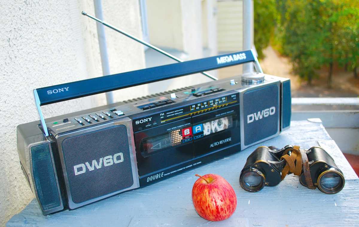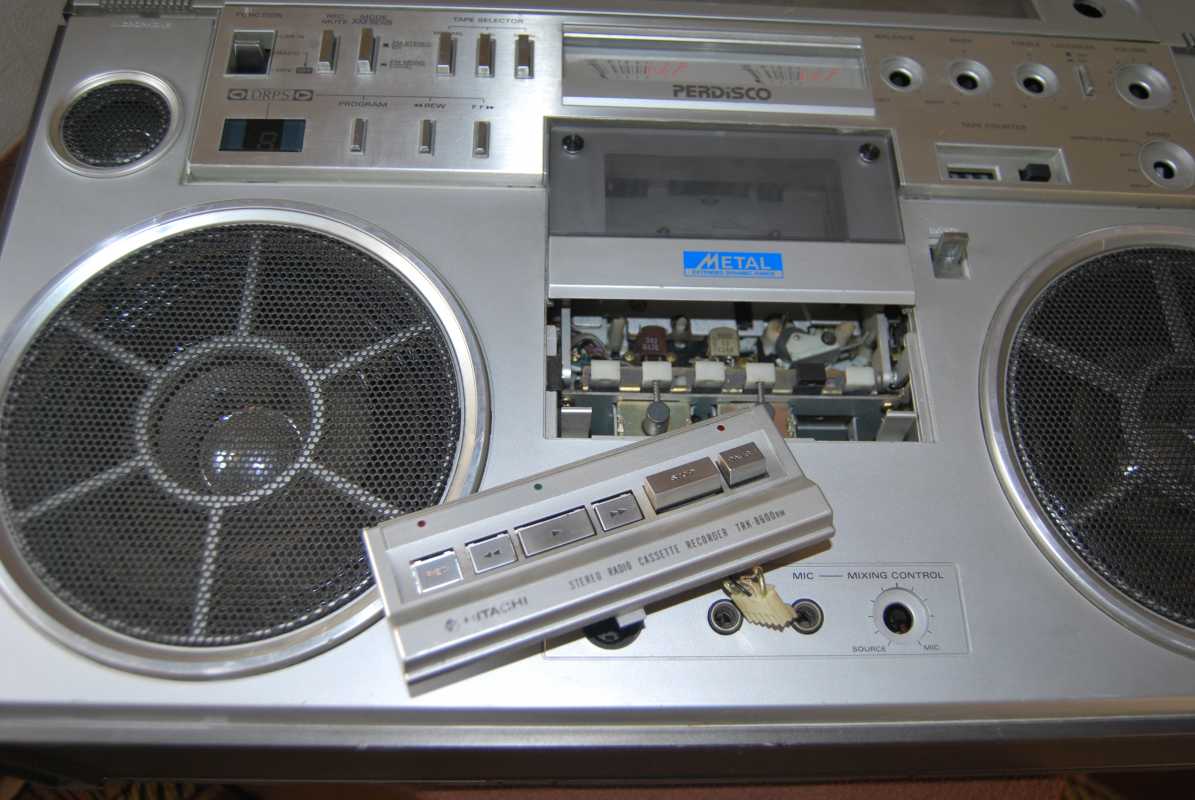 Давным давно, году эдак 1982 будучи десятиклассником, протоптал я дорожку в Минскую комиссионку на Карла Маркса, где в те далекие уютные времена продавались инопланетные для нас, жителей СССР, японские магнитофоны. Благодаря начинаниям великого британца Уинстона Черчилля и его изобретением "Холодной войны", наша страна была закрыта для многих иностранных товаров и подобную технику к нам везли редкие командированные за границу, советники, дипломаты и туристы с темной кожей. Так вот. Прихожу я как то в эту самую комиссионку, а нам стоит вот эта штуковина. Двухкассетников там в те времена еще не попадалось, кроме SHARP GF450 да ужасных 555, поэтому все мое внимание было сосредоточено на брутальных однокассетных бумбоксах. Раньше я не видел магнитол фирмы Hitachi, а тут стоит вот это самое чудо, выделяющееся некислыми размерами и ценой, что то типа 1700-1800 советских рублей. Ну откуда у школьника такие деньги? Больше этот монстр мне нигде не попадался. Минуло много лет а хотелки остались. Искал я эту магнитолу долго. Такое впечатление, что она крепко прописалась в Великобритании. Во всяком случае если она и появляется н каких либо интернетаукционах, то как правило с адресом Туманного Альбиона. За редким исключением магнитола всплывала в Финляндии. Именно там такую в свое время купил знакомый из Питера, Сергей Васильев. За десяток лет коллекционирования винтажного аудио эта модель у меня всегда возглавляла список искомого. Но то сложности с доставкой, то прочие странности судьбы. В общем, нет таких магнитол, которые бы я не нашел. В 2020 таки всплыла магнитола и совсем не в каком нибудь Гринвиче, а в русской Твери. Позвонил счастливому продавцу, начал переписываться. Общаемся по стоимости. И тут выясняется, что его магнитофон куплен ровно за ту сумму, которую я предложил ... в Минске! Ну что делать? Звезды сложились так, что "картина Малевича или Шагала" будет возвращаться к себе домой... в Беларусь. Как этот магнитофон прошел когда-то мимо моего внимания в моем же городе, честно, не представляю. Но факт есть факт. Сделал перевод на карточку продавцу и через 4 дня магнитола из Твери приехала в родные пенаты службой доставки "Энергия" за сумму чуть более 10 долларов. Мелочь, а как приятно. И вот магнитола у меня на подоконнике. Честно, то что я слышу своими старческими ушами, не ожидал! Очень честный звук двухполосных динамиков. 16 и 5см! Очень громкий и игручий. 22W PMPO. Hitachi TRK-8200E по одним источникам, увидел свет в 1980 году, по другим в 1981-м, по сервис-мануалу в 1982 году. Очень заметная магнитола из средней линейки без каких либо систем псевдорасширений звука кроме регулировок тембра, но с Dolby NR. Aппарат выполнен в двуцветной графитово-кремовой гамме, но где-то на просторах США появлялся и в одноцветном исполнении. Cтрелочные индикаторы весьма информативно колышатся в такт музыке, а при включении Dolby NR, загорается зеленый светодиод индикации. Всё управление выведено на верхнюю панель. Кому-то нет, а мне нравится! Есть у магнитолы и неожиданная фишка. А именно, сзади располагается настоящая кнопка-клавиша включения/выключения. И не как в других магнитолах, а прямо как в каком приборе или ... торшере. Эта магнитола живьём очень значимо смотрится. Большой, солидный геттобластер. В этом же стиле выполнен и еще один магнитофон этой фирмы в моей коллекции, старшенький трехполосный HITACHI