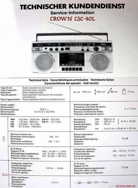 Как то совсем упустил из виду что у меня есть еще одна магнитолка фирмы CROWN. Каким-то чудом она оказалась совсем новой. Лежала где-то на антресолях в какой-то картонной коробке с ниразу не распакованным шнуром в целлофане. Мне всегда было интересна именно эта фирма, которая делала одни из самых добротных магнитол. А тут неожиданный формат - предшественник наводнивших мир немного позже малогабаритных "батончиков". Магнитола намного более миниатюрная чем на фотографиях. Устройство и функционал такой же как и у других батонов. Тут присутствует расширенное стерео. Цепкий приемник, который работает и без поднятой антенны. 4 диапазона радиоприемника. Идеальный винтажный аппаратик в интерьер квартиры, который совсем не занимает много места. Модель настолько удачно и массово продавалась, что в этом же формате CROWN выпустил аж 3 модели (CSC-130, CSC-49) в которых изменялся только внешний вид передней панели. Отметилась и фирма Universum CTR-2236 с меню на немецком. Более того, фирма AKAI то ли заказала, то ли выпустила у себя клон этой модельки под своим брендом и номером AJ-456FS. Но у AKAI нет расширения стереобазы. Нет ее и у короны CSC-49. А у этой модельки эта функция есть! Вот такая вот козявка, хотя у CROWN были и более компактные аппараты. Пришлось таки разобрать для мелкого обслуживания. Магнитола и внутри выглядит без следов эксплуатации. Практически стерильна внутри. Снимаются все ручки с лицевой панели. Откручивается 6 крестообразных винтов длинной по 20мм (один в батарейном отсеке), снимается лицевая панелька, динамики на ней крепятся одним разъемом к материнской плате. И все. ЛПМ с одним тонким квадратным пассиком. Но с этой лентопротяжкой этой маленькой короне повезло больше чем огромным Toshiba RT-8890 и 913. Она проще, надежнее и в ней есть настоящая индукционная стирающая головка, а не магнит. Динамики по 10см в диаметре. Бетонный размер. Но при желании можно установить что нибудь с магнитом побольше и появится побольше низов. Место внутри корпуса это позволяет. На платах все абсолютно доступно. Ремонт и обслуживание CSC-40 - дело пары десятков минут. ТЕХНИЧЕСКИЕ ХАРАКТЕРИСТИКИ: MW 515-1650kHz LW 145-360kHz SW 5,8-18,5kHz FM 88-108Mhz Частотные характеристики: 125-10000Hz Размеры: 440х184х99см Мощность: 2х1.8W Вес 2.4кг без батареек