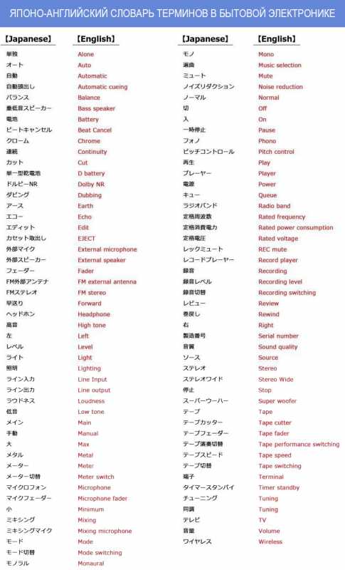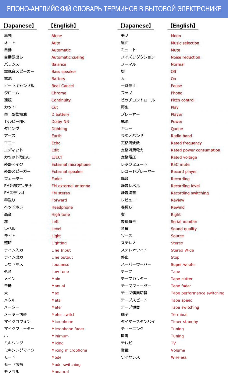 ЯПОНО-АНГЛИЙСКИЙ СЛОВАРЬ ТЕРМИНОВ В БЫТОВОЙ РАДИОЭЛЕКТРОНИКЕ 21 Май 2018 18:51 #8449
