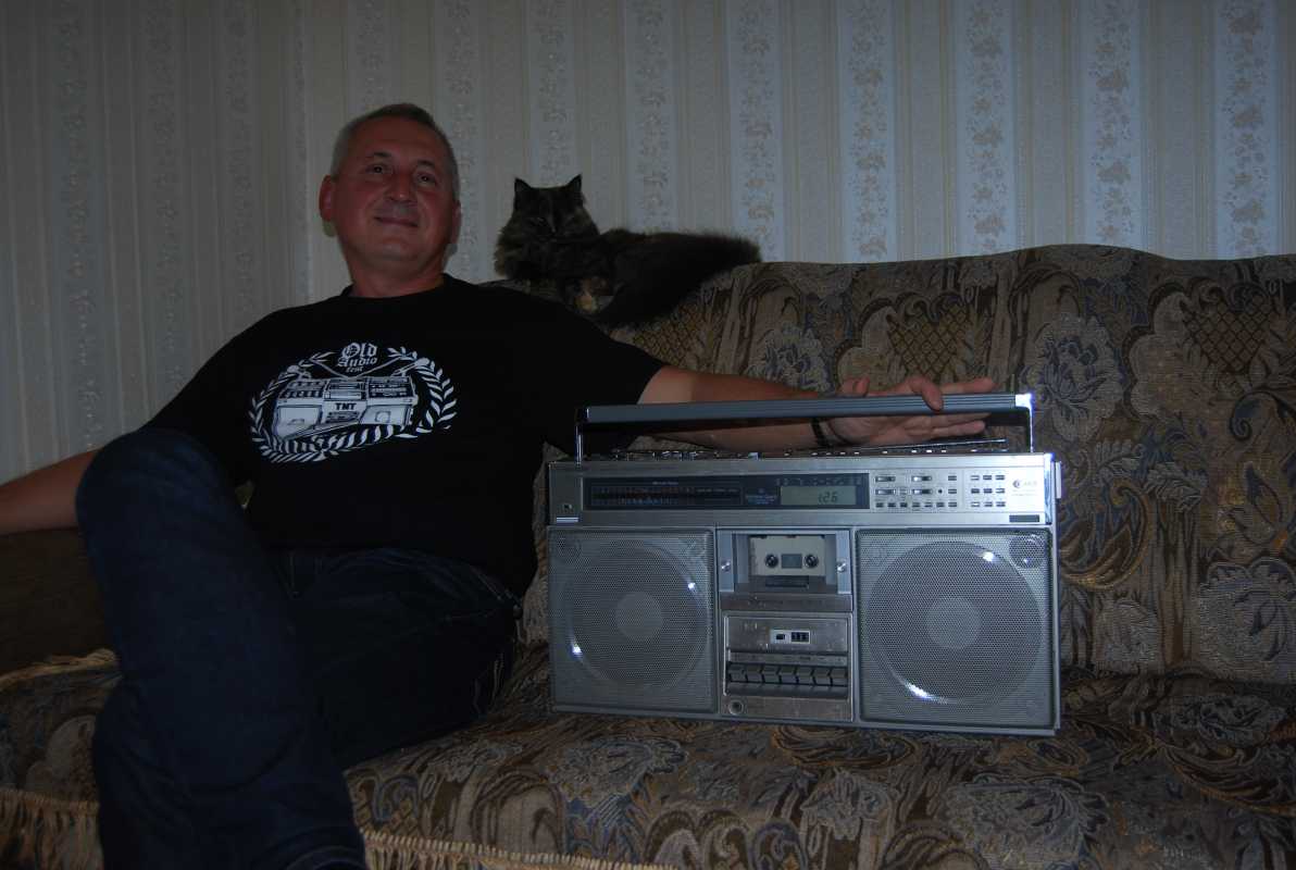 Идея поюзать и послушать пришла мне после того, как мой давний знакомый, мой тезка Олег Мамаев сообщил что прикупил себе SHARP GF9595. Был у меня как-то такой в тёмно-коричневом исполнении, но доктрина моего коллекционирования на тот момент не включала сосуществования нескольких моделей этой марки и мой 9595 уехал на Украину. К тому же я не любитель цифровых тюнеров. А тут у приятеля вдруг завёлся, и у меня дома на данный момент оказалось еще три GF9696 GF508 GF9797. Расскажу о судьбе каждого из них. Грязный, потрепанный жизнью и ребятишками GF9696 мне достался за 50 долларов. Если быть более точным, найден в продаже на интернет-барахолке в городе Могилеве. Сначала хотел сесть на авто и прокатиться 200км. Потом вспомнил, что там живет коллега по белорусскому магнитольному форуму, Леша. Перевел хозяину денег, а Леха на следующий день отправил мне сие чудо попутными коллегами Могилевской автобазы. Получаю я этот шарп. В "спине" его ни одного болта. Вот-вот развалится на две части. Грили ржавые. Стекло, шкала и верхняя панель залиты кофе. Антенны поломаны. Верхняя панель и надписи стерты до черного пластика. Подкассетник был оторван и стекло треснуто попалам. Про отмывание от грязи подмоточных роликов и без меня песен спето предостаточно. Все было актуально! Все было о сценариям пройдено! В общем, я оторвался! Недели две вылизывал этот аппарат. А через год перекрасил и перерисовал верхнюю панель. Был проведен тюнинг динамиков, после которого появились интересные моим ушам верхи. А именно, перекрашены динамики обычной канцелярской тушью. Иногда ковыряется-ковыряешся с аппаратом. Так задолбает, чо сделаешь и избавился нафиг, содрогаясь от воспоминаний. Все-таки любой ремонт это - маленькая трагедия. Она может быть или больше или меньше. Но этот шарп почему-то у меня решил прижиться. Нуравится мне его звук. Очаровала меня эта пощипанная жизнью балалайка. Приведу в обзоре несколько фотографий для примера. И так, мой первый участник GF9696 (Могилевский) Теперь этот аппаратик уже несколько лет как выглядит немного по другому верхняя панелька у него изменилась... SHARP GF-508 Второй аппаратик приехал ко мне с далекого Сахалина. Долго не давала мне покоя идея заполучить "островной" GF508 именно в черном исполнении. У меня куча друзей-японцев по всему миру, сам был много раз в этой стране и меня отнюдь не пугают надписи иероглифами, а скорее вызывают феерические чувства колорита. Этот аппаратик песлал мне с Дальнего Востока шизаудист Андрей. Магнитола проделала дальний путь по морю, чуть не угодив в тайфун, бушевавший в конце сентября в Приморье. Потом доехала до Москвы, откуда пересела в автобус до Минска. Распечатал коробку. А там черное счастье, которое японский хозяин не таскал по огородам, не клеил стикеры от жвачек, не обливал кофе из термоса и не разводил внутри тараканов. Включил - радио работает. Как и положено, всего два канала, против четырех "могилевских". Включил деку. Мотор не шумит. Полез с отверткой. Благо знаю как там лазить. Феррит сердечника с витками провода отвалился. Обломана оказалась одна из стоек, а вторая его не удержала. Исходила решила капля немецкой эпоксидной смолы. Японский бог миловал - обмотка не оборвалась во время перезда. Спишем, что виноват тайфун и шторм под Хабаровском. ЛПМ тут же продемонстрировал свой диагноз. Пассик, а он здесь 13см длинной и 4мм в ш