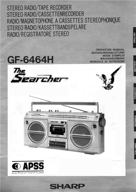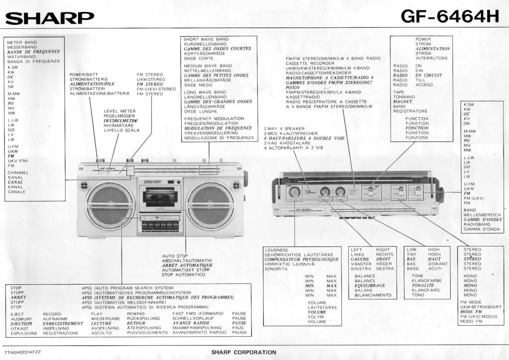 Слабое место магнитолы SHARP GF-6464, как и его родного брата 5454 - тумблер Radio/Тape, который ломается из за механических нагрузок включения и выключения. Но это несложно лечится. Есть проверенный способ. Больше в этом шарпе ломаться нечему. Вечный аппарат.
