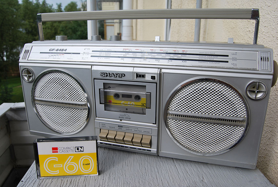 Прямо у магазина к нам подбежал какой-то фарцовщик, который предложил за 900 рублей купить коробочный магнитофон SHARP-GF6464.