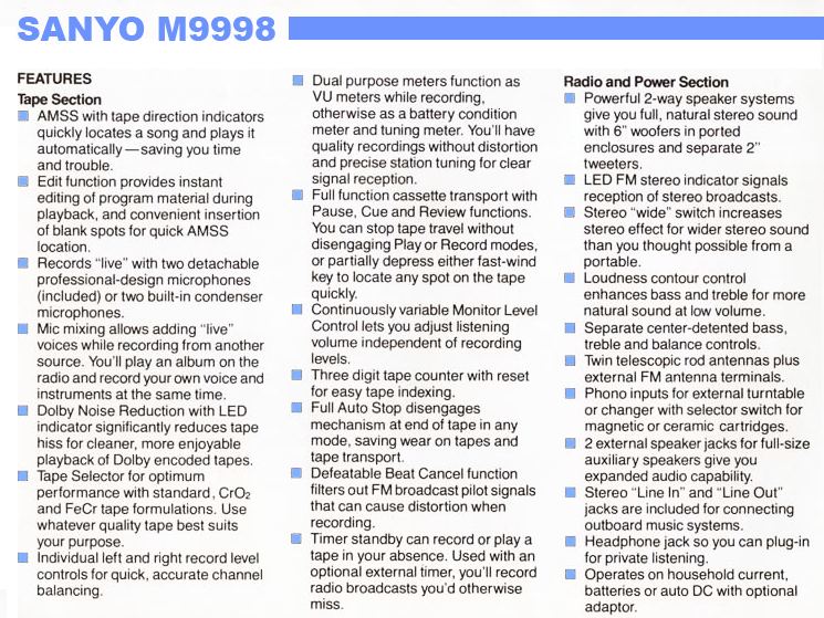 Просто так я уйти не мог, хоть я и не услышал из него ни одного звука, кнопки ЛМП вываливались, а подкассетник с мутным оргстеклом не открывался. Просто приобрел в мешке кота-переростка, размером с шарп "три топора".