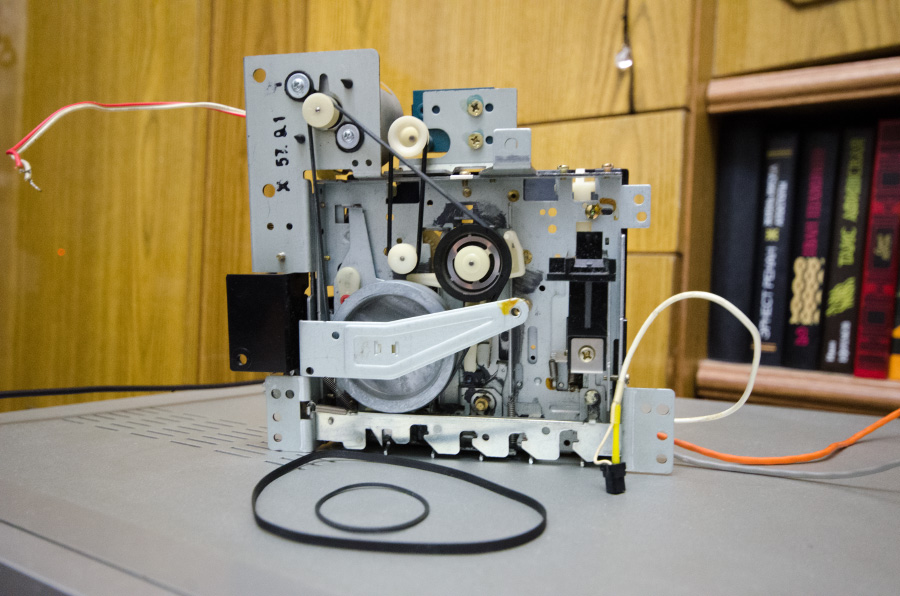 Из гаража я привез чудище домой. Вооружился отверткой и забрался в потроха. Крышка подкассетника была отремонтирована в первую очередь. Пришлось банально разогнуть погнутый алюминий, заменить стекло на современный винил и отрегулировать поршневой лифт, заправив его новой демпферной смазкой.