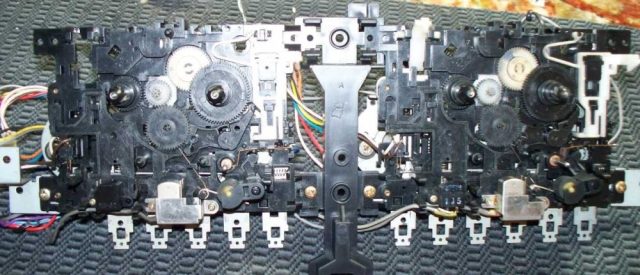 ЛПМ, без каких либо сложностей, чем то мне напомнил лентопротяжку Панаса 55, всё пластмассовое, множество шестерёнок. На каждый ЛПМ по двигателю. Естественно не обошлось без замены пассиков.