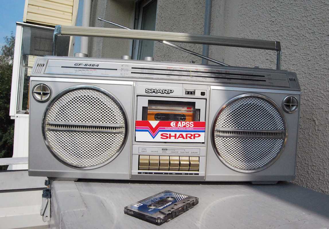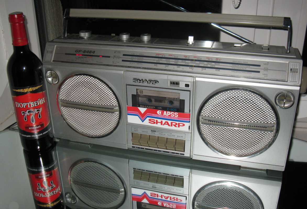 Прямо у магазина к нам подбежал какой-то фарцовщик, который предложил за 900 рублей купить коробочный магнитофон SHARP-GF6464.
