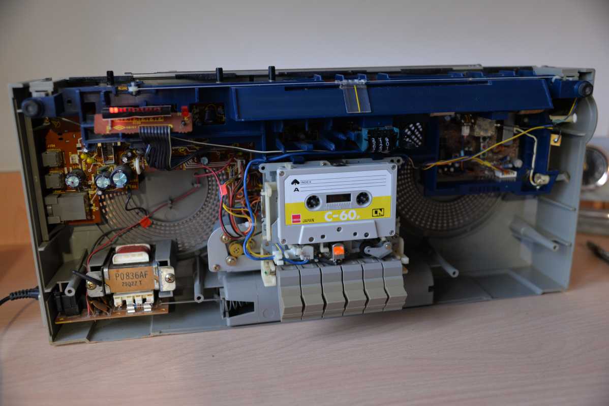 Пришлось изрядно повозиться и нет ни малейшего желания вспоминать, что пришлось пережить, получив магнитолу с веером косяков да переломов. Возился долго и сегодня это одна из жемчужин, но стоимость ее больше угнетает, чем радует. Это недостаток дорого купленных магнитол. За 30-50 греют душу больше. Поверьте на слово. Нельзя дорого покупать магнитолы. Потраченные большие деньги угнетают и чувство совершенной глупости меня угнетало лет пять, пока наконец не отпустило, а мировые цены на старые бумбоксы не улетели вверх, словно бесхозные космические корабли.