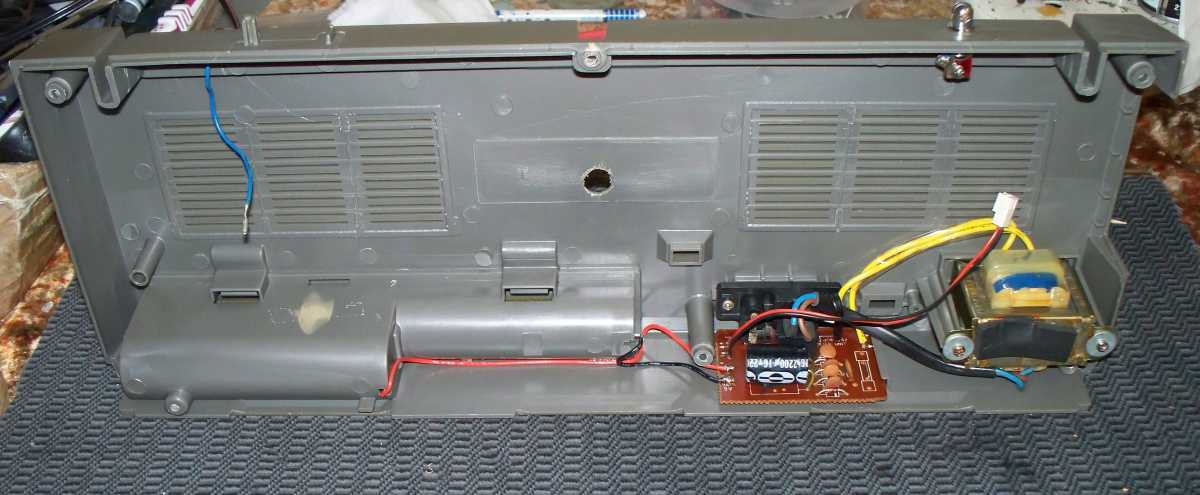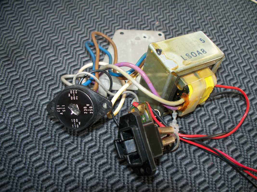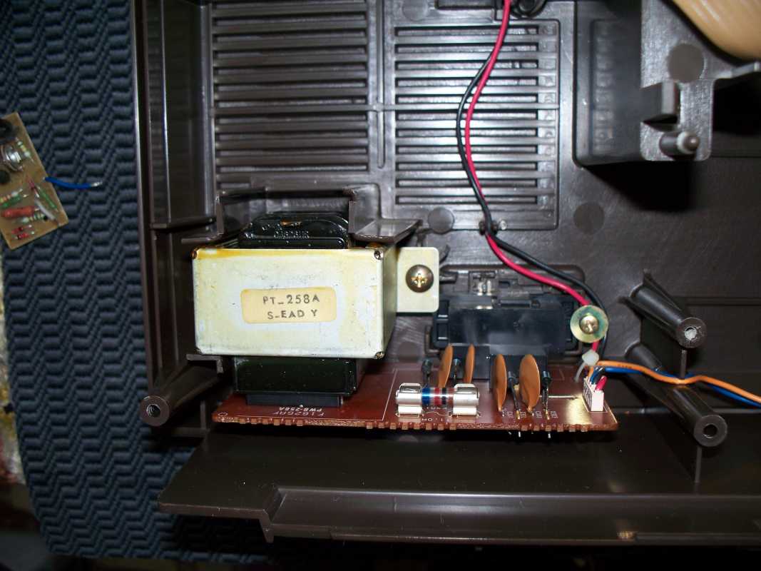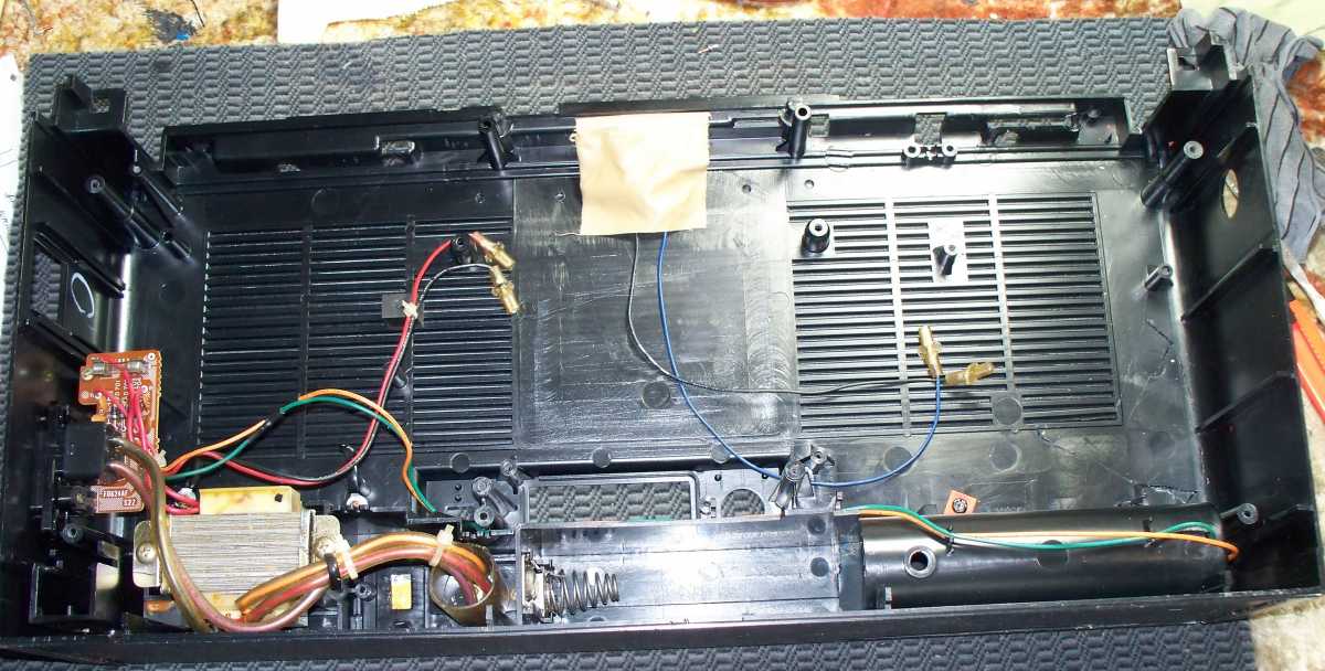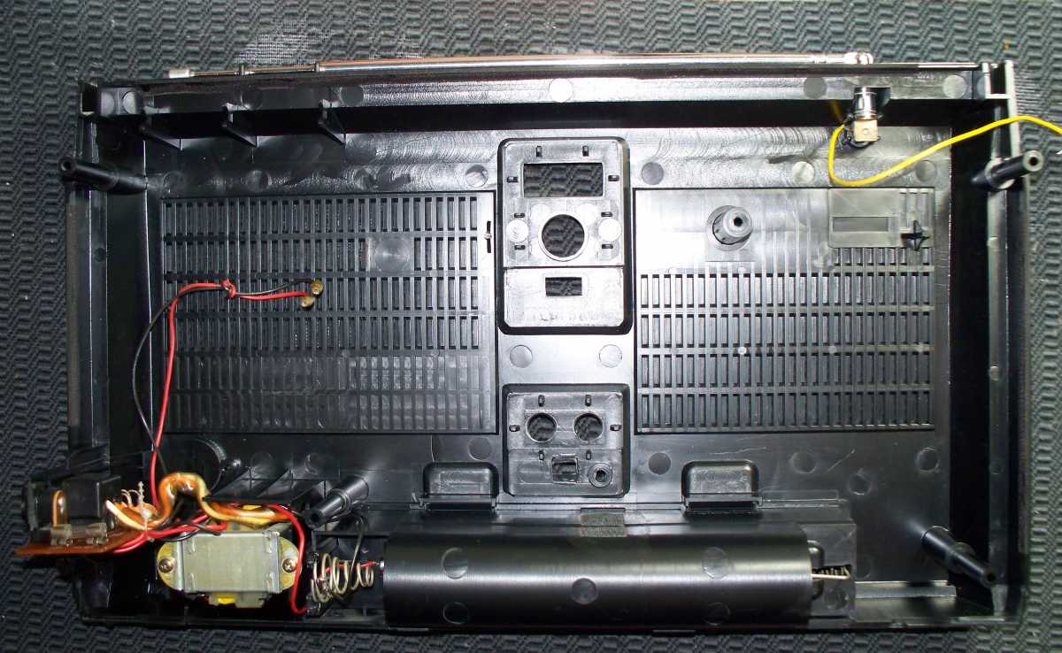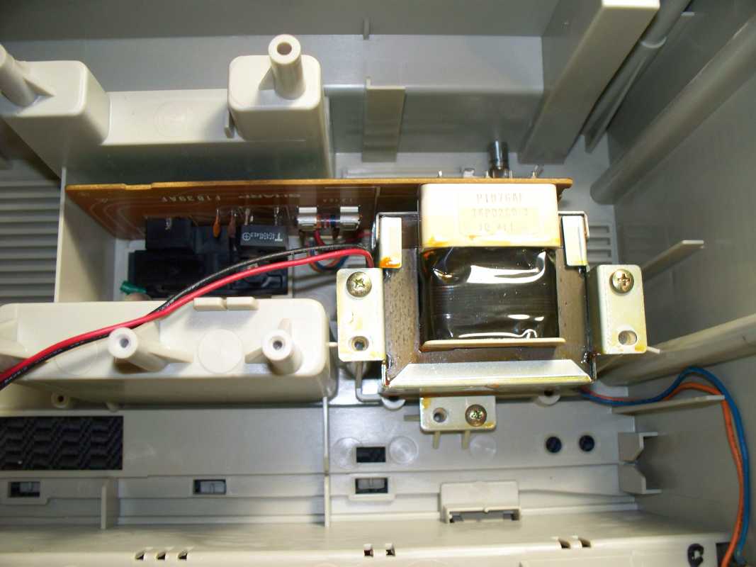 На корпусе остаётся только трансформатор и две антенны, каждая отвечает за свой диапазон. Трансформатор, он как у всех шарпов, работает с тремя видами напряжения.