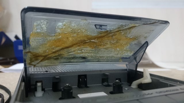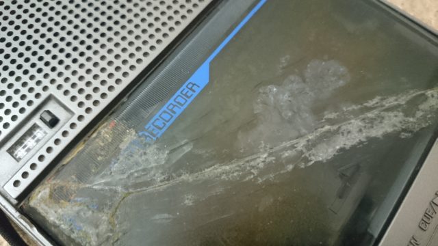 Аппарат рабочий, только вот беда - битая крышка кассетника, мало того, что битая, так и еще склеена клеем "момент".