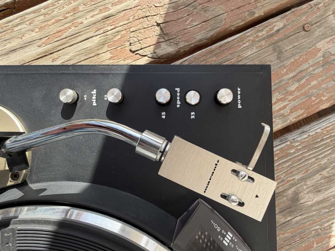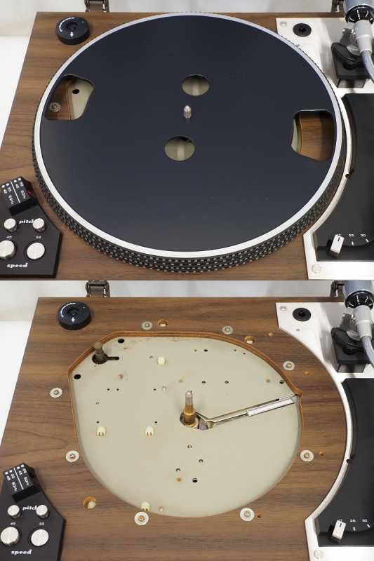 Моя любовь среди вертушек этого бренда. Имел огромное удовольствие полгода пользоваться этим аппаратом и было очень жалко расставаться. По ощущениям, это Роллс-ройс среди вертушек. Дорого. Богато. Основательно. Фирменный светло-бронзовый цвет корпуса. Желто-кофейный качественный пластик крышки. Американские дизайнеры из семидесятых тут постарались. Корпус из солидного пластика. А вот днище из толстенного ДСП, изготовленного при высоком давлении. Проигрыватель необычный конструкционно. Наиболее вкусное здесь - диск из дикости алюминия, который отлит наоборот, конусов вниз. Оригинальное решение, позволившее разместить огромный экран стробоскопа. Прямой привод DD двигателя. Вертушка с ручным управлением и включаемой функцией автостопа.