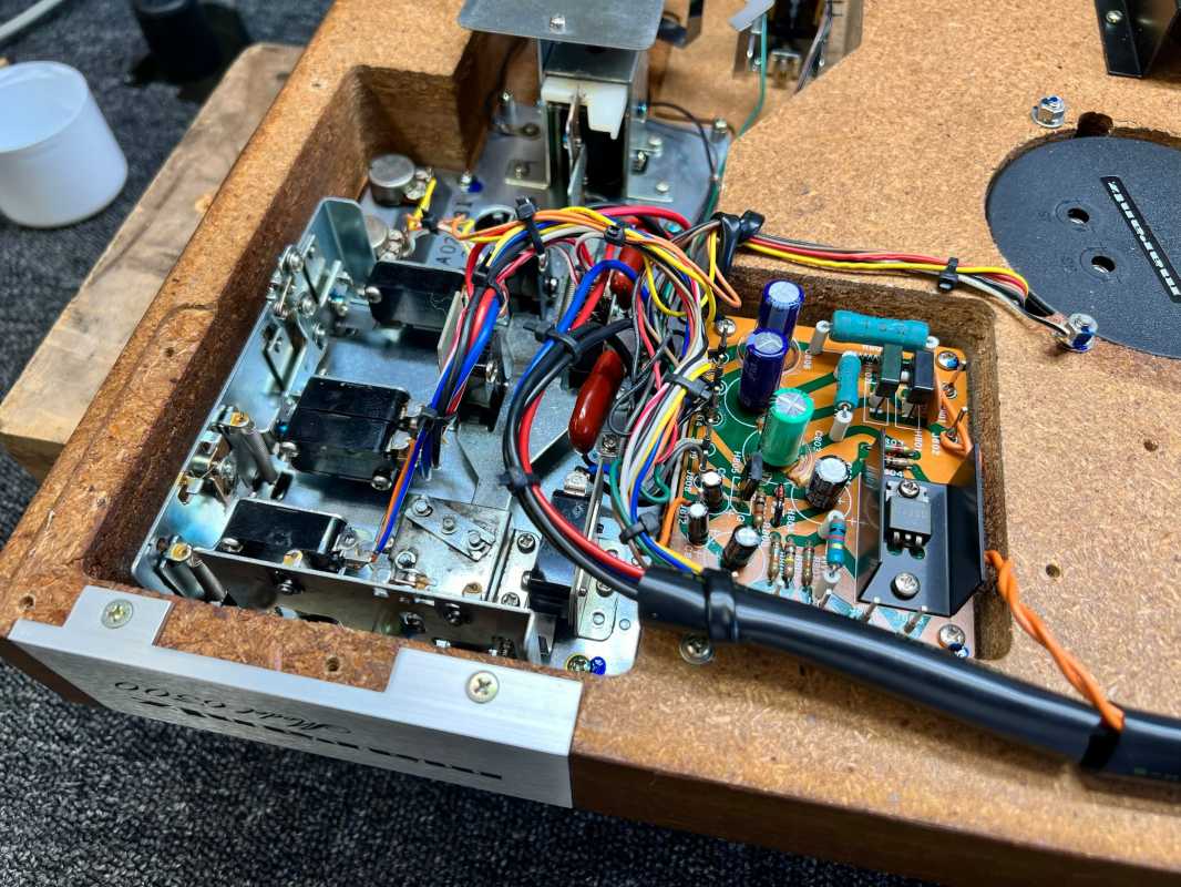 У этой модели нет кварцевой стабилизации. Следовательно, проигрыватель требует качественного источника преобразования тока, если это модель для рынка Японии. Все возможные гуляния скорости лечатся обслуживанием потенциометров стробоскопа, который здесь на борту. Мотор легко разбирается, что бы смазать шпиндель современным синтетическим маслом. Для этого достаточно всего одной его капли.