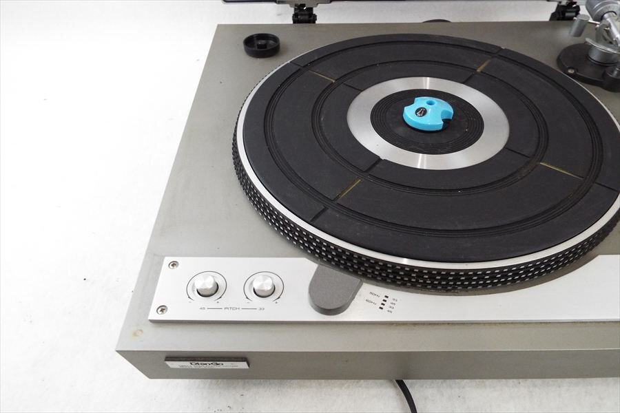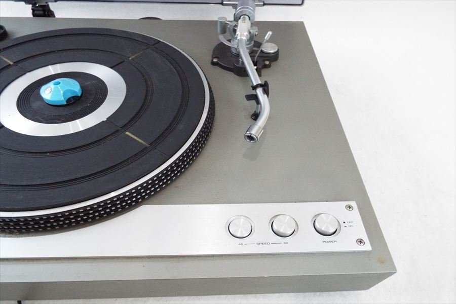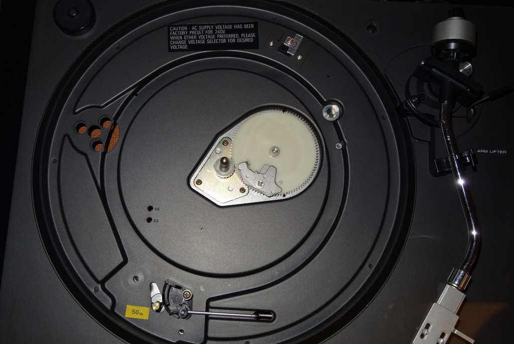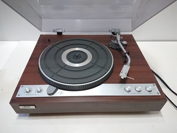 Тут все по классики семидесятых. Мощный корпус из прессованного ДСП. Тонарм по ходу от MicroSeiki с компенсацией вектора сворачивания S-образного тонарма,  прямо как на Sansui серии SR. Прямой привод с каким-то чудесным мотором на 11W. Cтробоскоп.