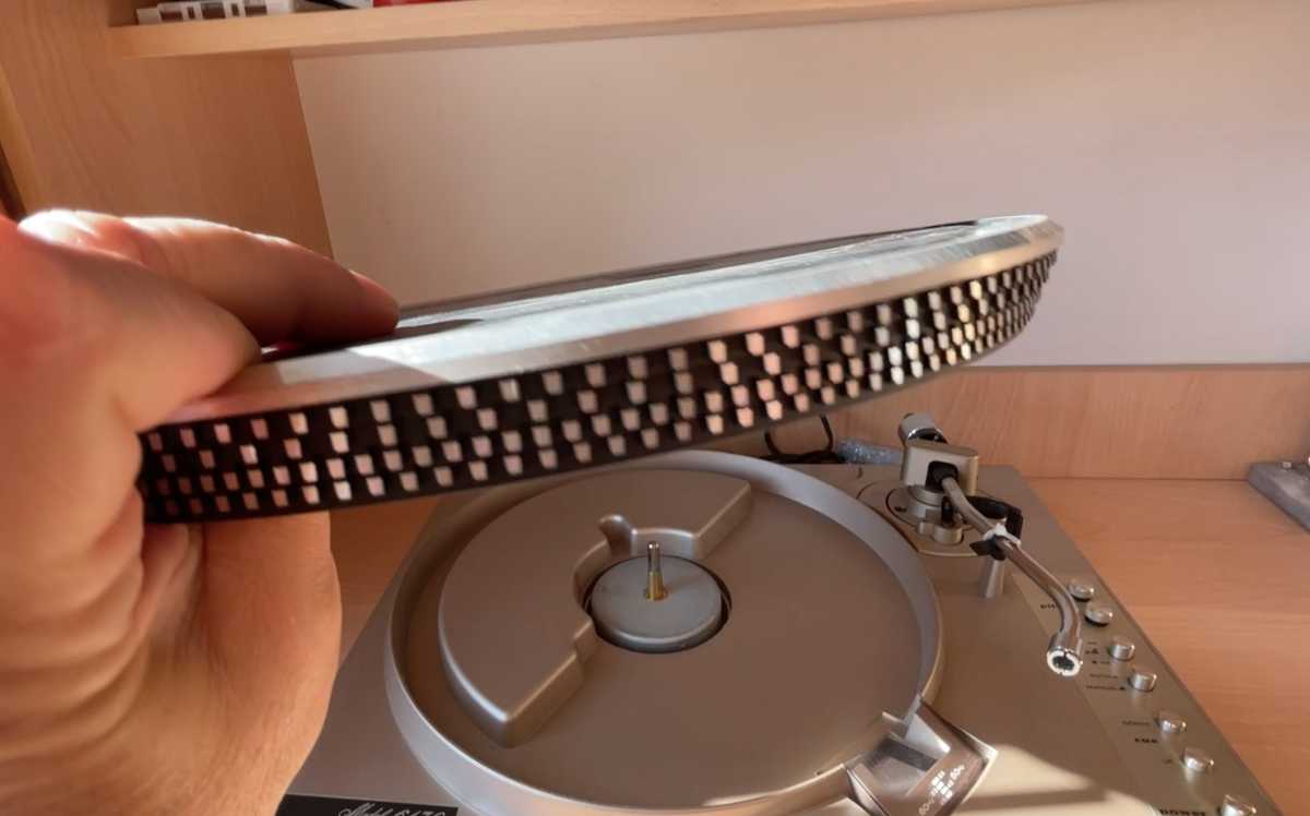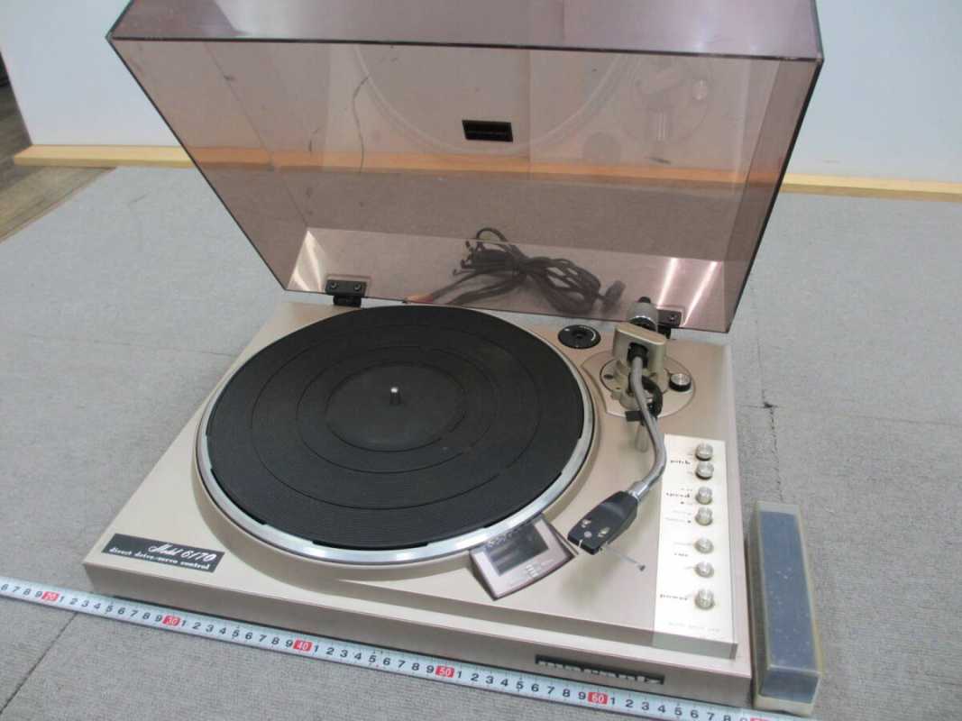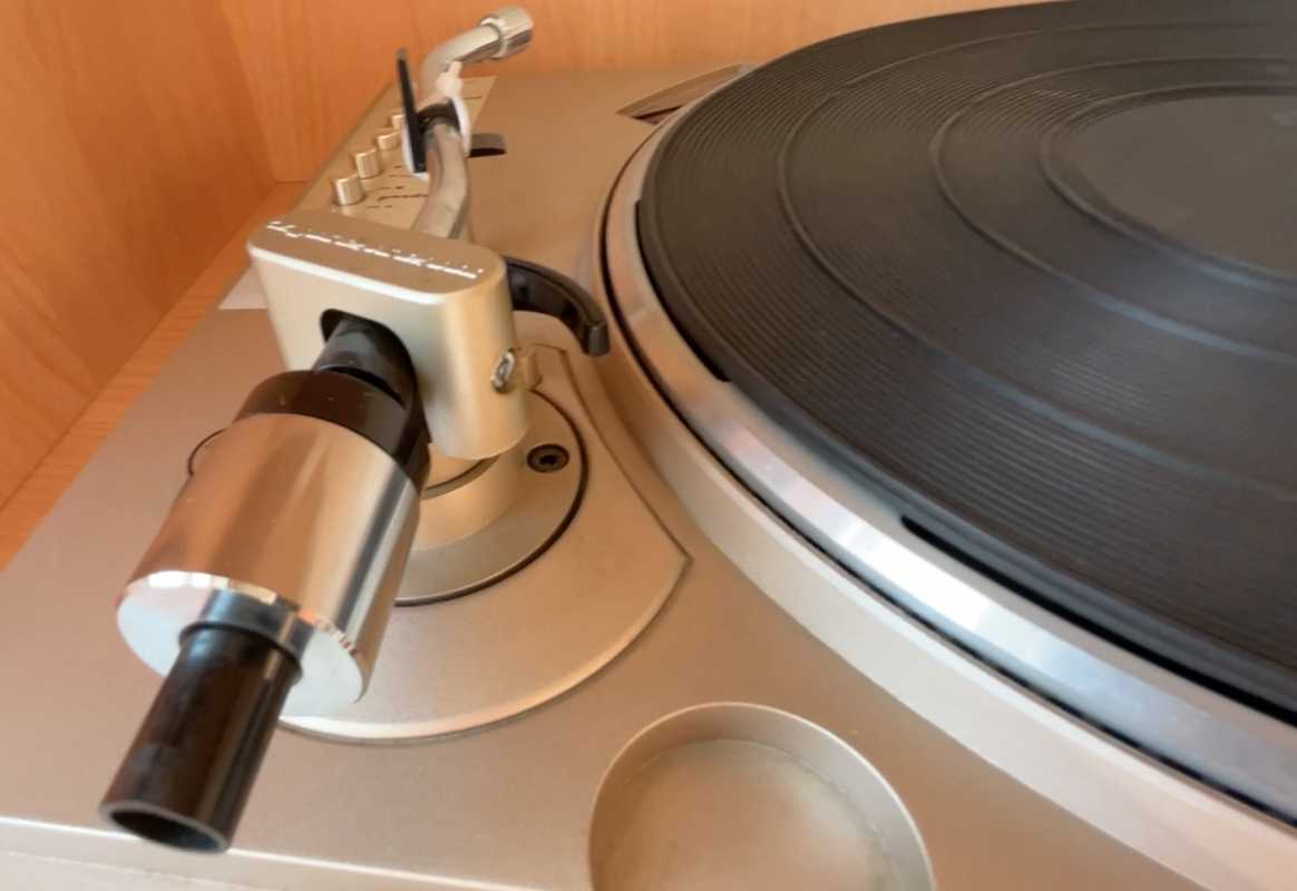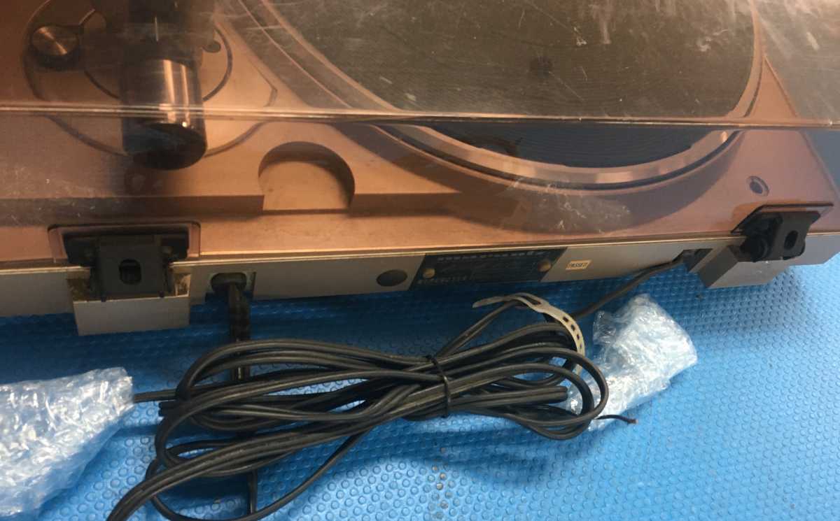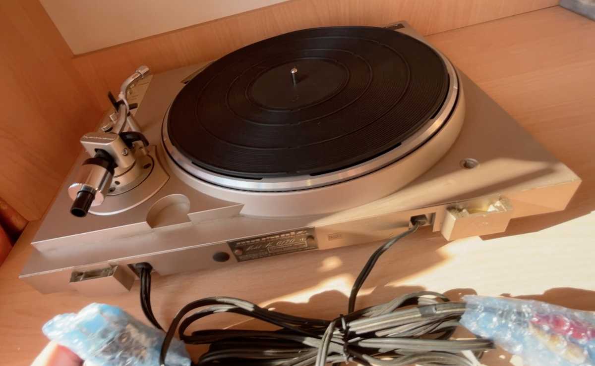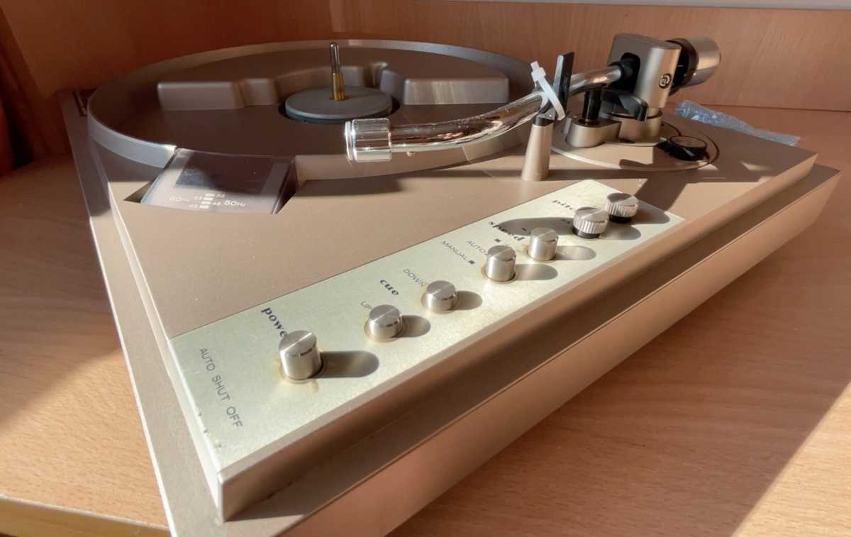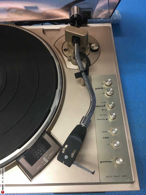 Интересная вертуха, разработанная в США и выпускавшаяся в Японии. Именно такая была у моего приятеля Эдика Селивохина в Туле в далеком 1985 году. Где простой советский капитан раздобыл себе этого холёного монстра, не представляю. Но все мои лучшие записи с винила были сделаны именно ис-под иглы этого проигрывателя. Это прямоприводный проигрыватель с реализацией автостопа с автоподъемом тонарма. После подъема тонарма небольшой магнит выключает сам проигрыватель. Оборудован стробоскопом управления скоростью с допуском +_3%. Литой аллюминиевый диск массой 1.4кг не такой как у многих других вертушек, а с обратным конусом. Я таких больше нигде пока невстречал. Широкая часть конуса - это поверхность вращающегося диска, часть с меньшим диаметром уходит вниз корпус и риски стробоскопа отражаются в большом зеркале. Очень удобно и наглядно. Корпус проигрывателя из качественного, толстого пластика, окрашенного в золотисто-кофейный цвет, а вот дно, неожиданно, из фрезерованного ДВП, которое японцы изготавливали под высоким давлением и качественно высушивали. И уже к нему крепятся антирезонансные ножки.