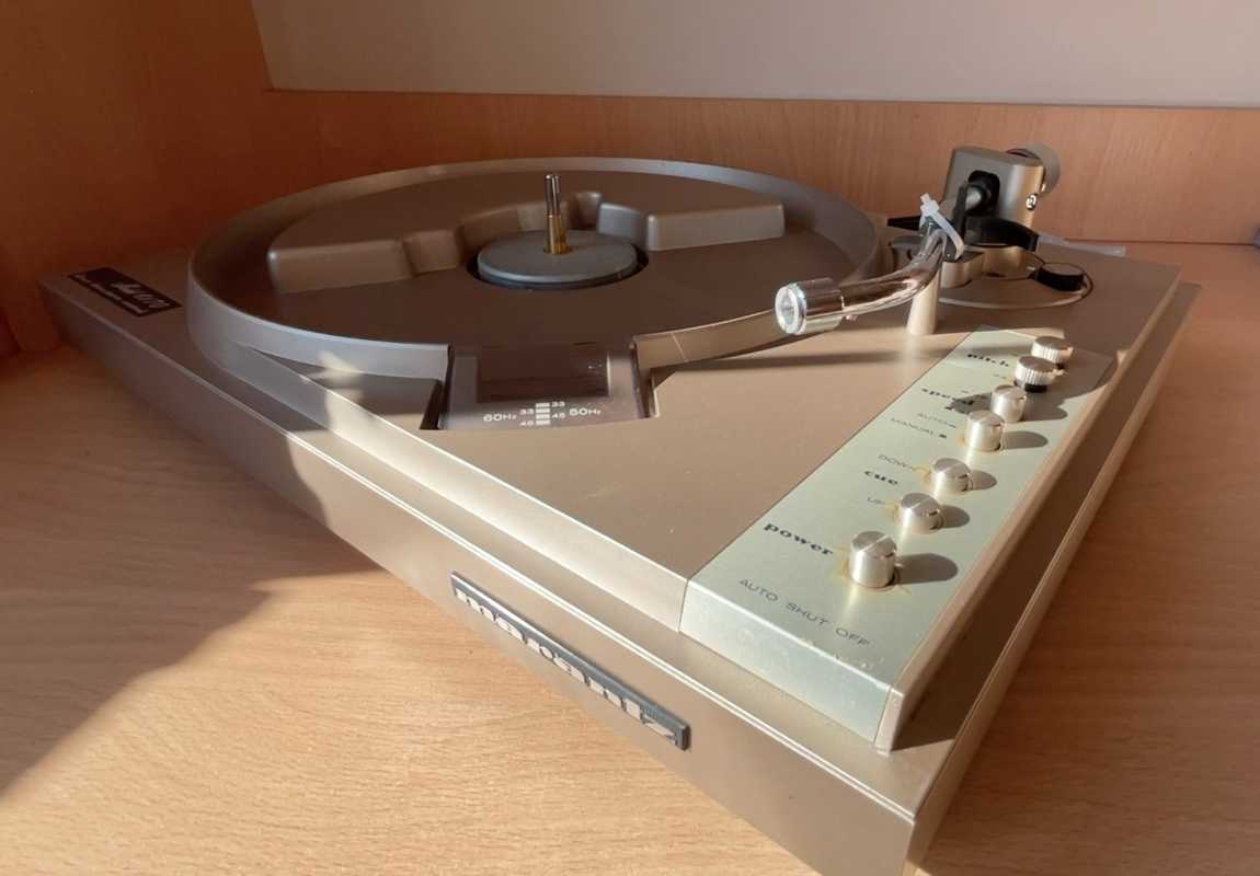 Проигрыватель конструкционно по удобству напоминает лимузин. Всё управление кнопками, которые солидно перещёлкивается. Подемм и опускание тонарма производится так же кнопками, управляющими лифтом. Крышка у этого MARANTZ тоже необычная. Из чуть розоватого пластика. Можно использовать проигрыватель в полностью ручном режиме, но для гурманов приятная опция - срабатывание автостопа с подъемом микролита. Тонарм как в обычных автоматах на начало пластинки не вернется. Но приятно. Не Rolls-Roys но Bentley