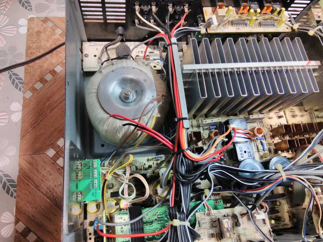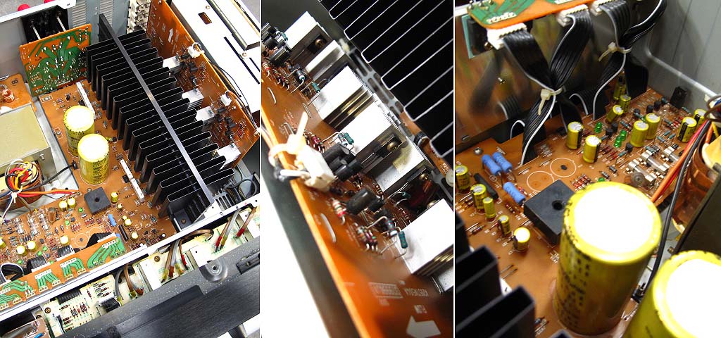 В секции электропитания источники питания цифровой и аналоговой секций полностью отделены от схемы выпрямителя к печатной плате. Кроме того, источники питания постоянного напряжения расположены независимо в общей сложности в 11 местах, в том числе для управления цифро-аналоговыми преобразователями и для освещения светодиодов, чтобы устранить помехи от цифрового шума.